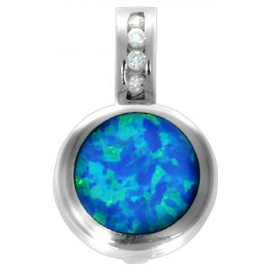 925/- Sterling Silber rhodiniert synth.Opal blau und Zirkonia