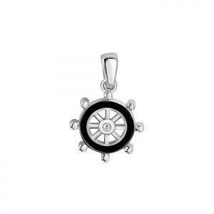 925/- Sterling Silber rhodiniert Steuerrad Lack schwarz