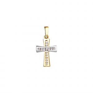 375/- Gelbgold bicolor Kreuz Zirkonia