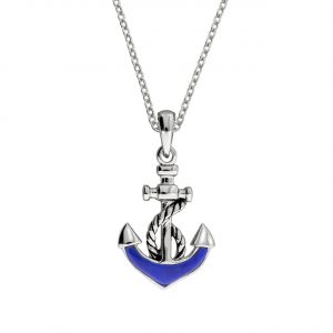 925/- Sterling Silber rhodiniert Anker mit Lapis
