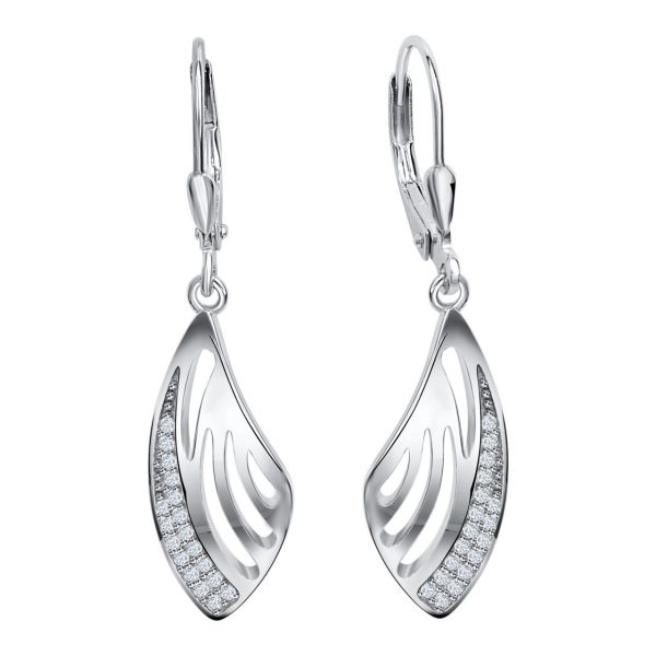 Elegante Ohrhänger 925 Sterling Silber rhodiniert. Ohrring veredelt mit je 18 weißen Zirkonia-Steinen. Angenehmer Tragekomfort durch Klappverschluss. Ideales Geschenk für Frauen. Damenschmuck in schönem Geschenk Etui verpackt. .