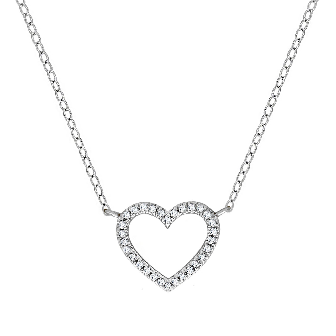 Stilvolle Kette Damen aus feinstem 585 Weißgold. Schmuckstück verdedelt mit funkelnden Diamanten. Halskette mit elegantem Herz- Anhänger bestückt. Ideales Geschenk für Frauen. Damenschmuck in schönem Geschenk Etui verpackt. .