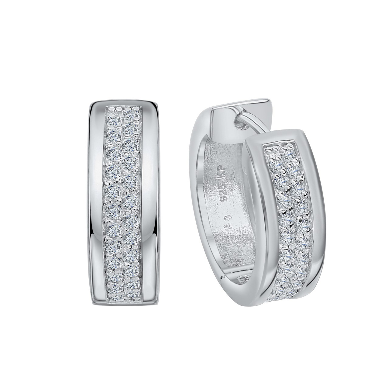 Ohrringe 925 Sterling Silber rhodiniert. Klapp Creolen mit einem Durchmesser von ca. 18mm. Ohrschmuck mit funkelnden Zirkonia Steinen bestückt. Ideales Geschenk für Frauen. Creolen sind ein Must-Have für die Frau von heute. .