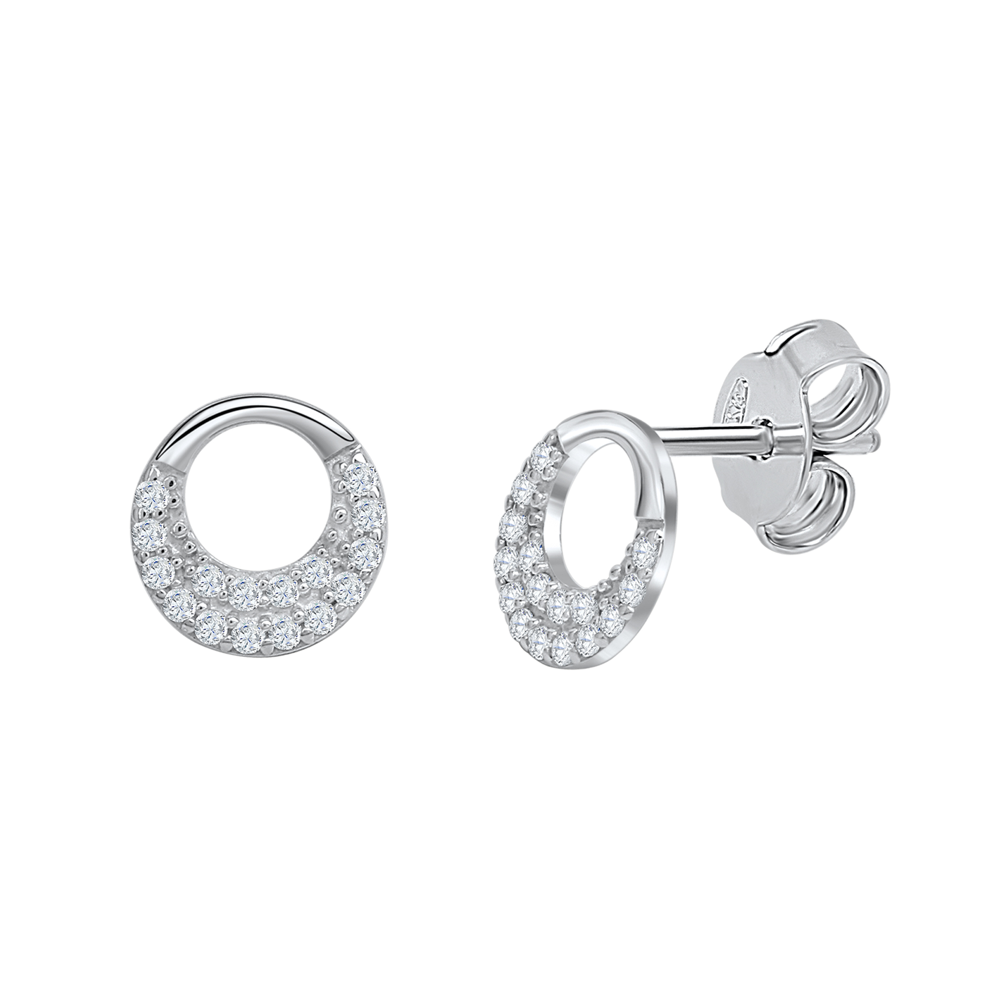 Schöne Ohrstecker aus 925 Silber rhodiniert. Ohrringe veredelt mit funkelnden Zirkonia-Steinen. Damenschmuck mit Pin und Flügelsicherung. Anlaufgeschützt durch Rhodium Veredelung. Ideales Geschenk für Frauen. .
