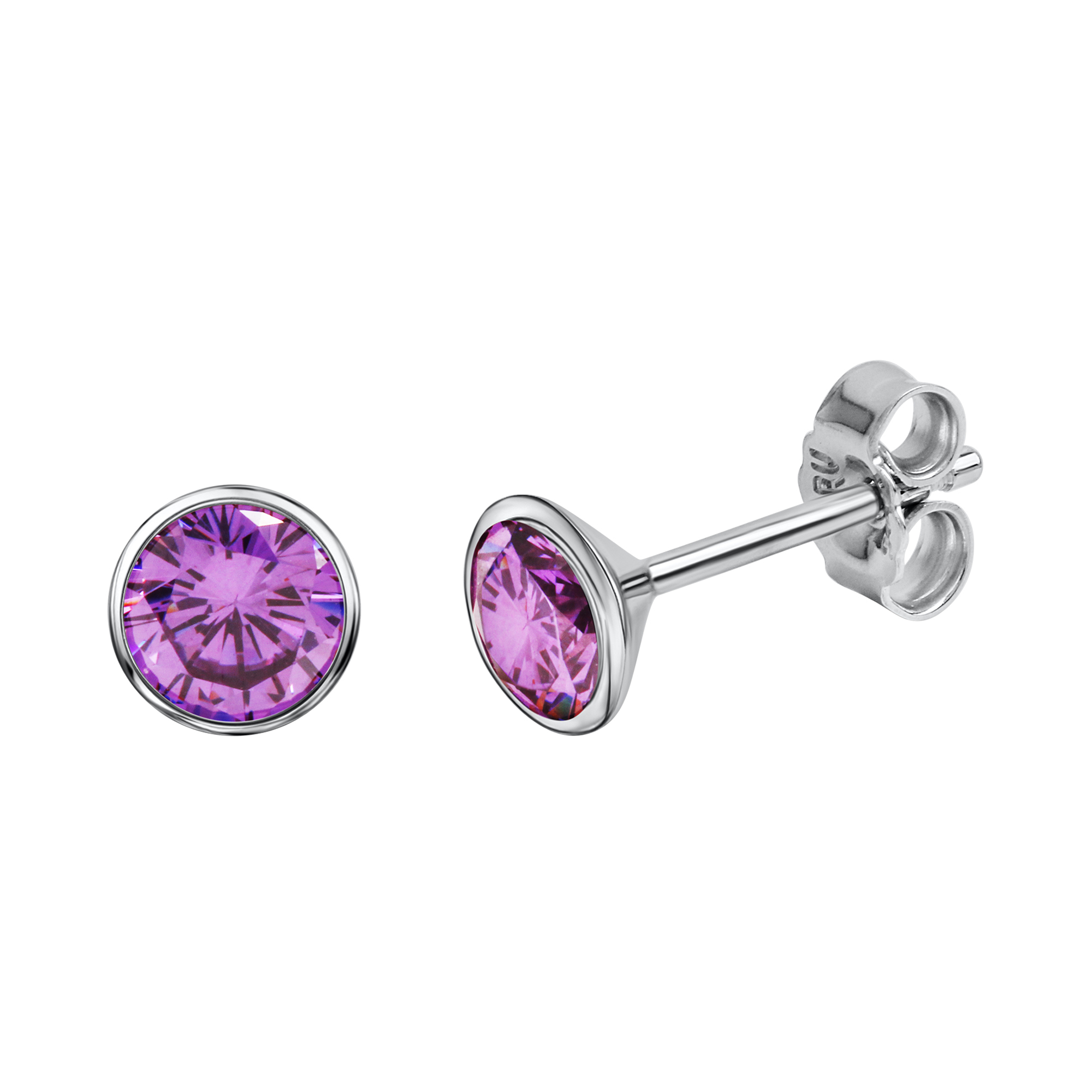 Schöne Ohrringe aus feinem 925 Sterling Silber. Ohrstecker mit lila Zirkonia Steinen bestückt. Damenschmuck mit Pin und Flügelsicherung. Ideales Geschenk für Frauen. Schmuckstück in schönem Geschenk Etui verpackt. .