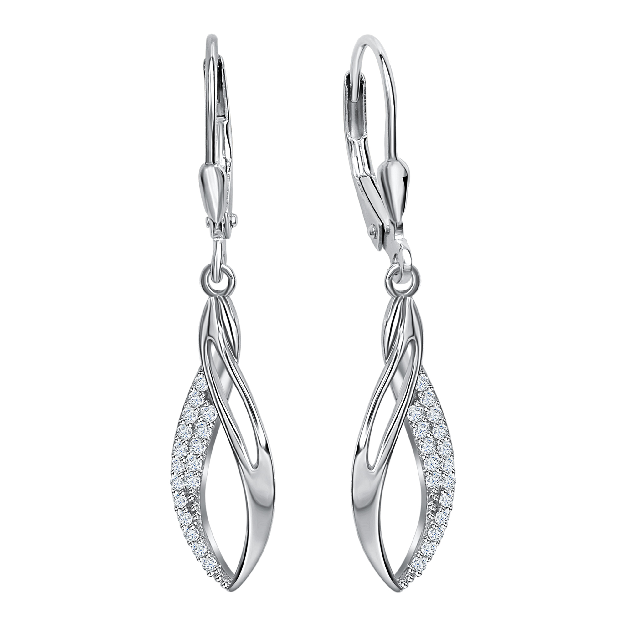 Elegante Ohrhänger 925 Sterling Silber rhodiniert. Ohrring veredelt mit je 17 weißen Zirkonia-Steinen. Angenehmer Tragekomfort durch Klappverschluss. Ideales Geschenk für Frauen. Damenschmuck in schönem Geschenk Etui verpackt. .