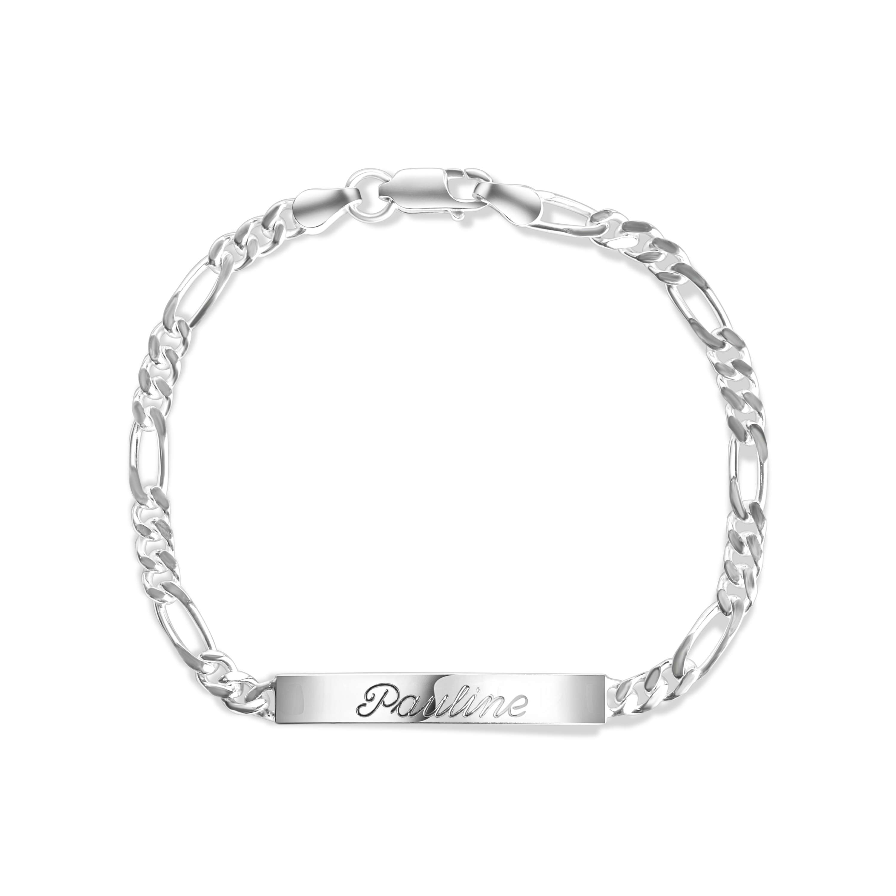 Spezielles Gravur Armband . Gefertigt aus echtem 925 Sterling Silber . Kette im schönen Figaro Design. Hochglanzpolierte Oberfläche . Das ideale Geschenk für die Liebsten. .