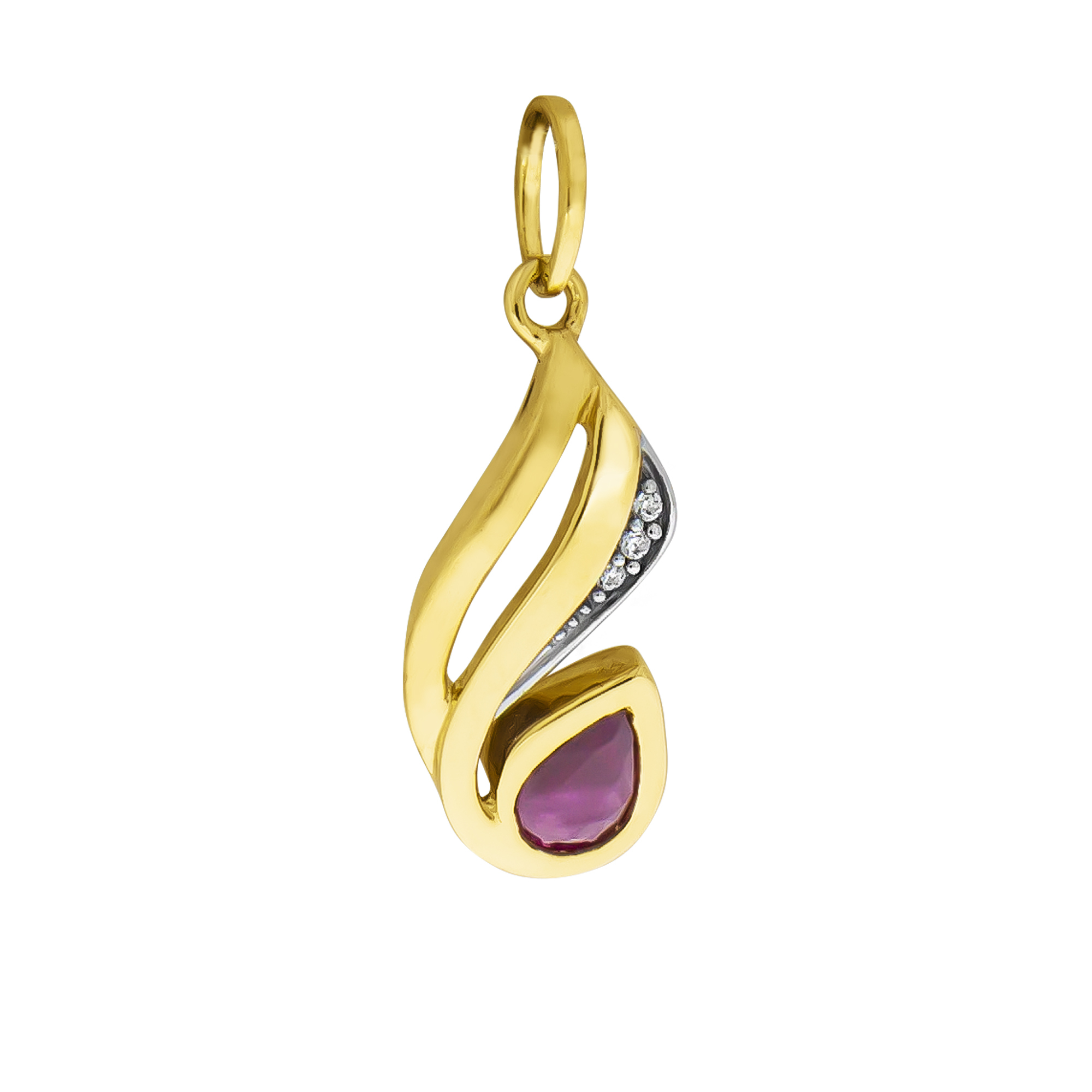 Eleganter Anhänger aus 333/- Gelbgold bicolor. Veredelt mit 1 Rubin und 3 Zirkonia. Hochwertige Verarbeitung. Sehr angenehmer Tragekomfort. Das ideale Geschenk für besondere Anlässe. .