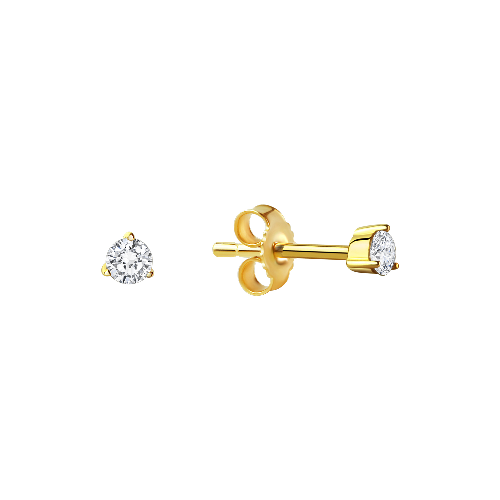 Klassische Ohrstecker aus 333/- Gelbgold. Veredelt mit 2 weißen Zirkonia. Krappenfassung mit rundem Zirkonia 3 mm. Hochwertige Verarbeitung. Das perfekte Geschenk zu jedem Anlass. .
