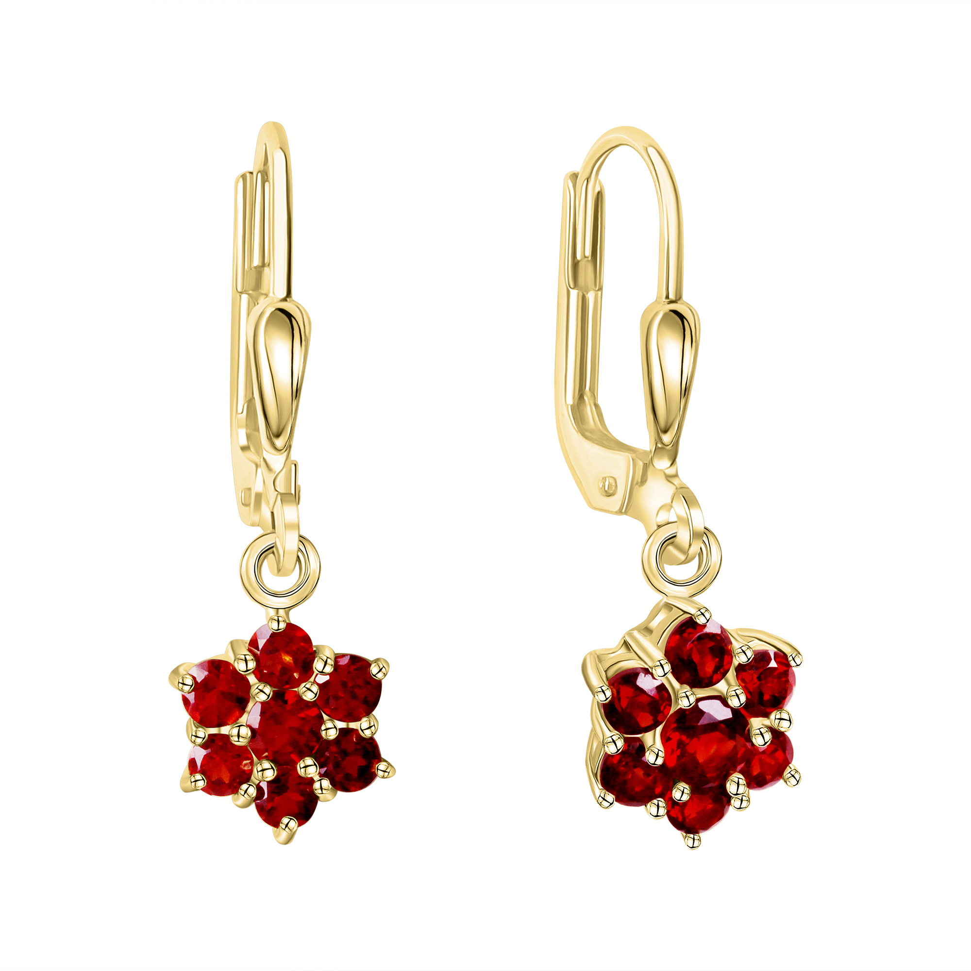 Elegante Ohrhänger aus 333/- Gelbgold. Veredelt mit je 7 Granat-Steinen. Angenehmer Tragekomfort. Hochwertige Verarbeitung. Für den Alltag oder besondere Anlässe. .