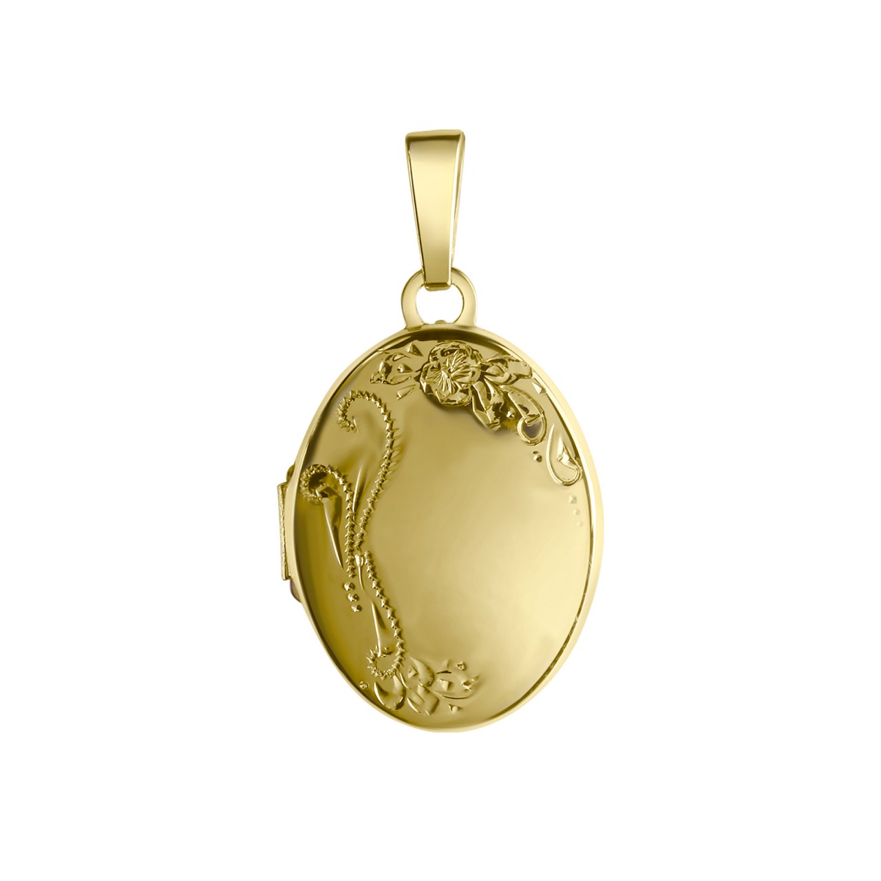 Edles Medaillon mit hochglanzpolierter Oberfläche. Aus 375/- Gelbgold glanz. Bezauberndes Blütenmuster. Hochwertige Verarbeitung. Das perfekte Geschenk zu jedem Anlass. .