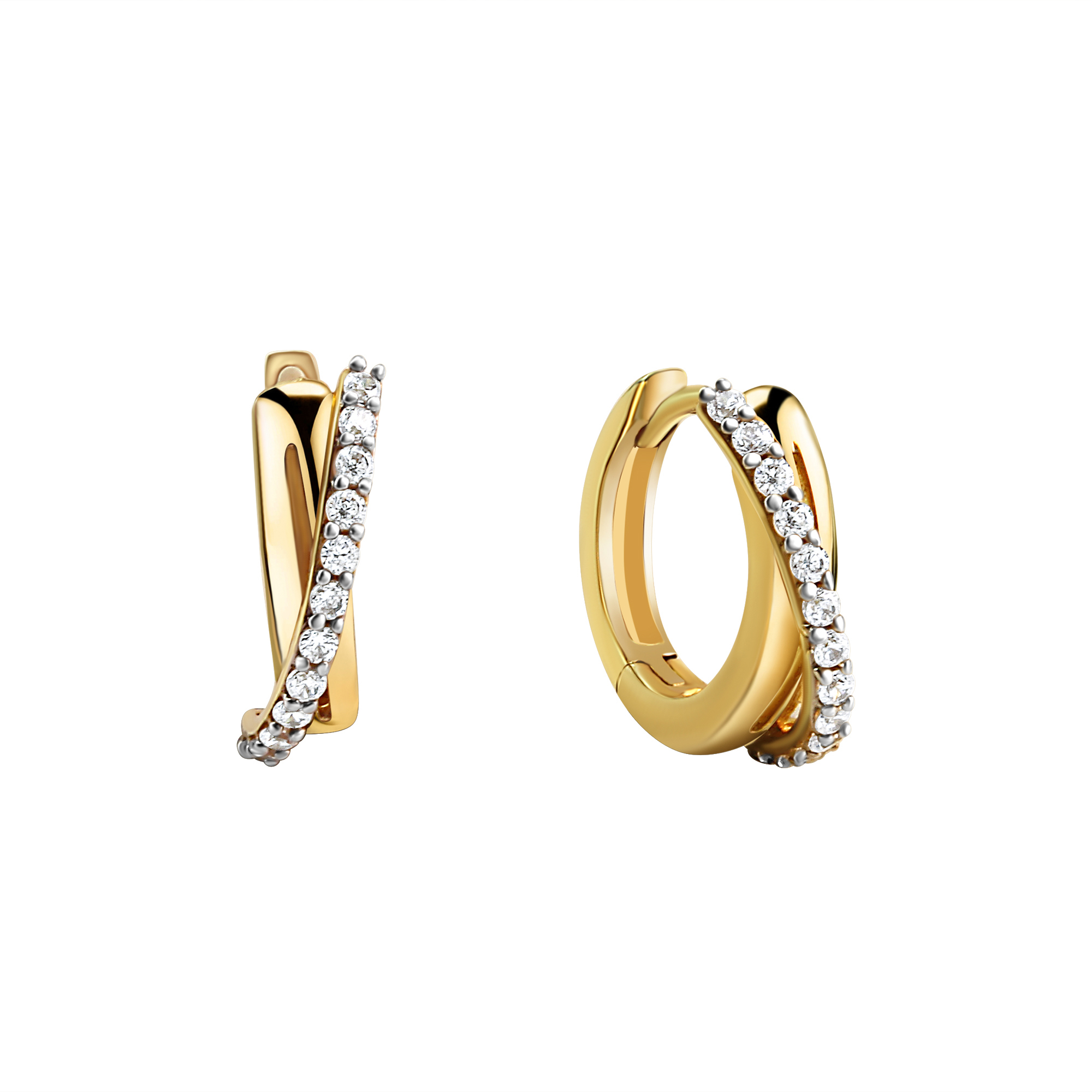 Moderne Klappcreolen aus 375/- Gelbgold bicolor. Oberfläche hochglanzpoliert. Veredelt mit 26 weißen Zirkonia. Hochwertige Verarbeitung. Das perfekte Geschenk zu jedem Anlass. .