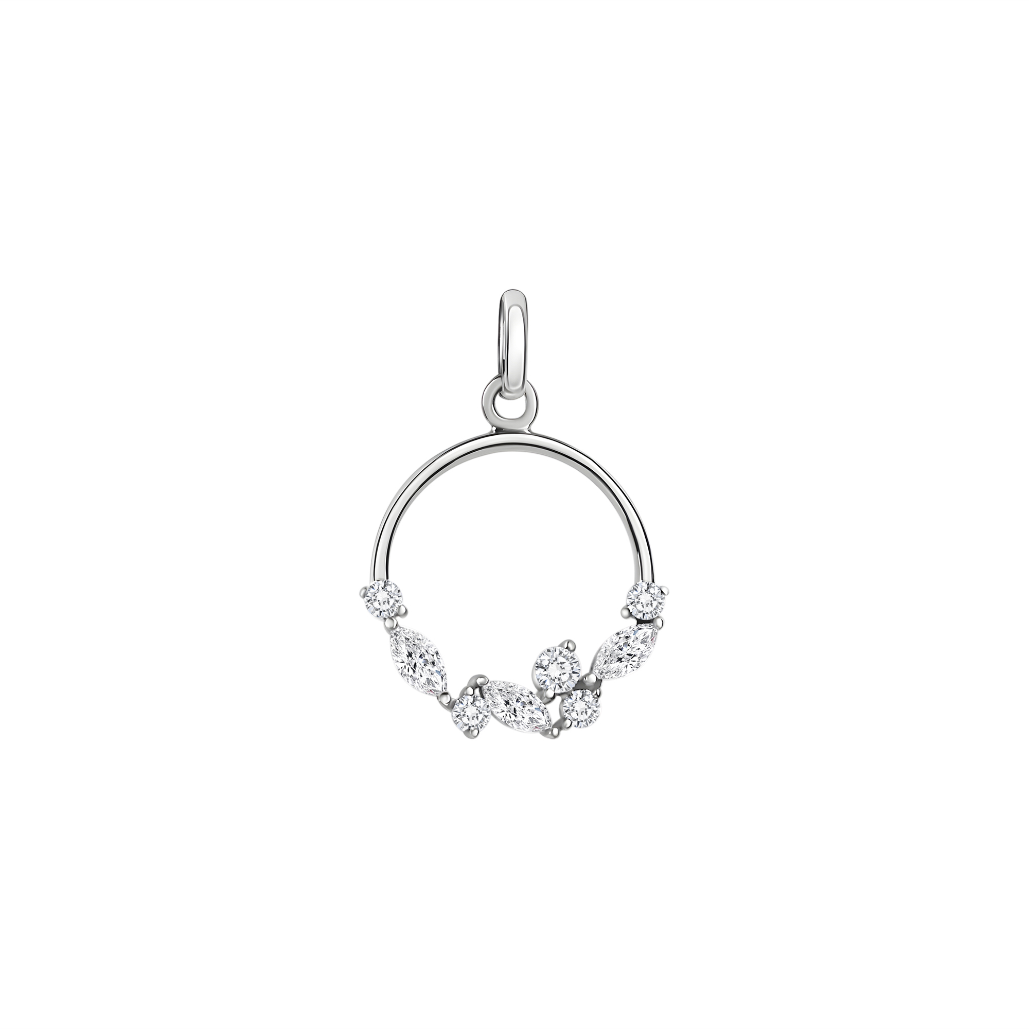 Moderner Anhänger aus 375/- Weißgold glanz. Runder Anhänger veredelt mit 8 weißen Zirkonia. Angenehmer Tragekomfort. Hochwertige Verarbeitung. Das ideale Geschenk für besondere Anlässe. .
