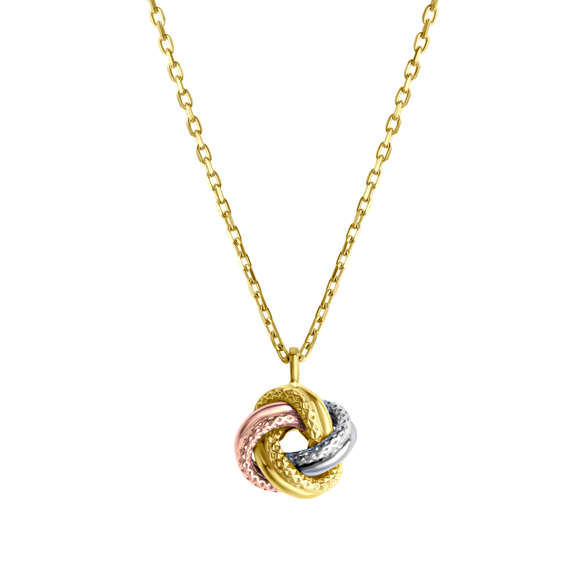 Edles Collier aus 585/- Gelbgold tricolor. Anhänger Motiv Knoten strukturiert. Schönes Design. Hochwertige Verarbeitung. Das ideale Geschenk für besondere Anlässe. .
