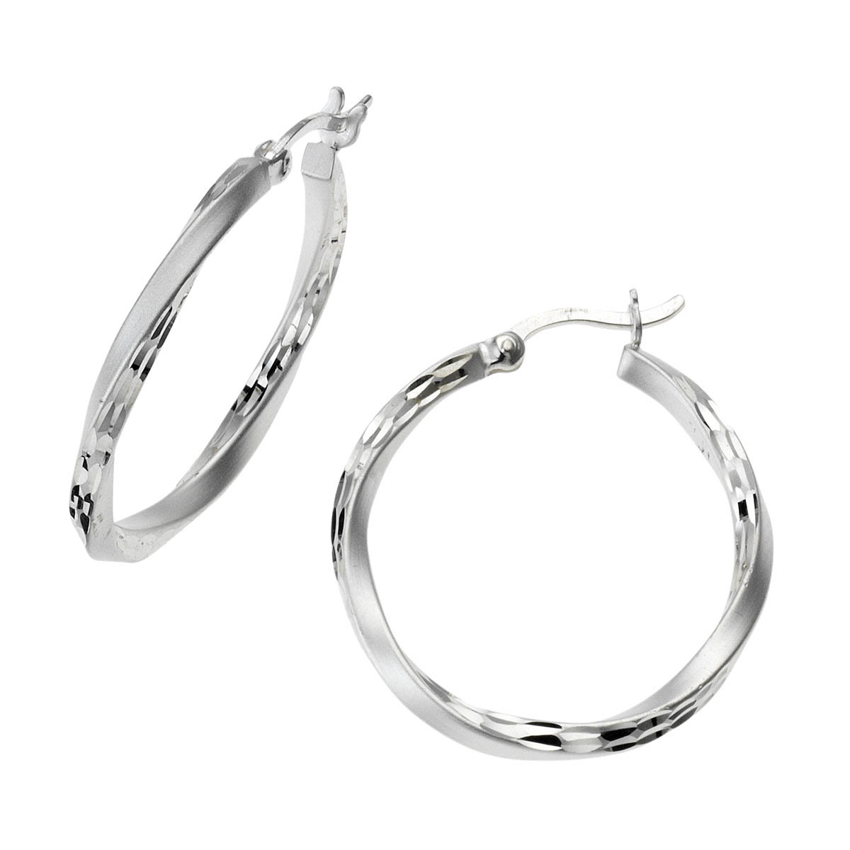 Creolen aus 925 Silber rhodiniert diamantiert. Ohrringe formschön in matter und glänzender Optik. Angenehmer Tragekomfort durch Klappverschluss. Ein ideales Geschenk für Frauen. Schmuckstück für den Alltag oder besondere Anlässe. .