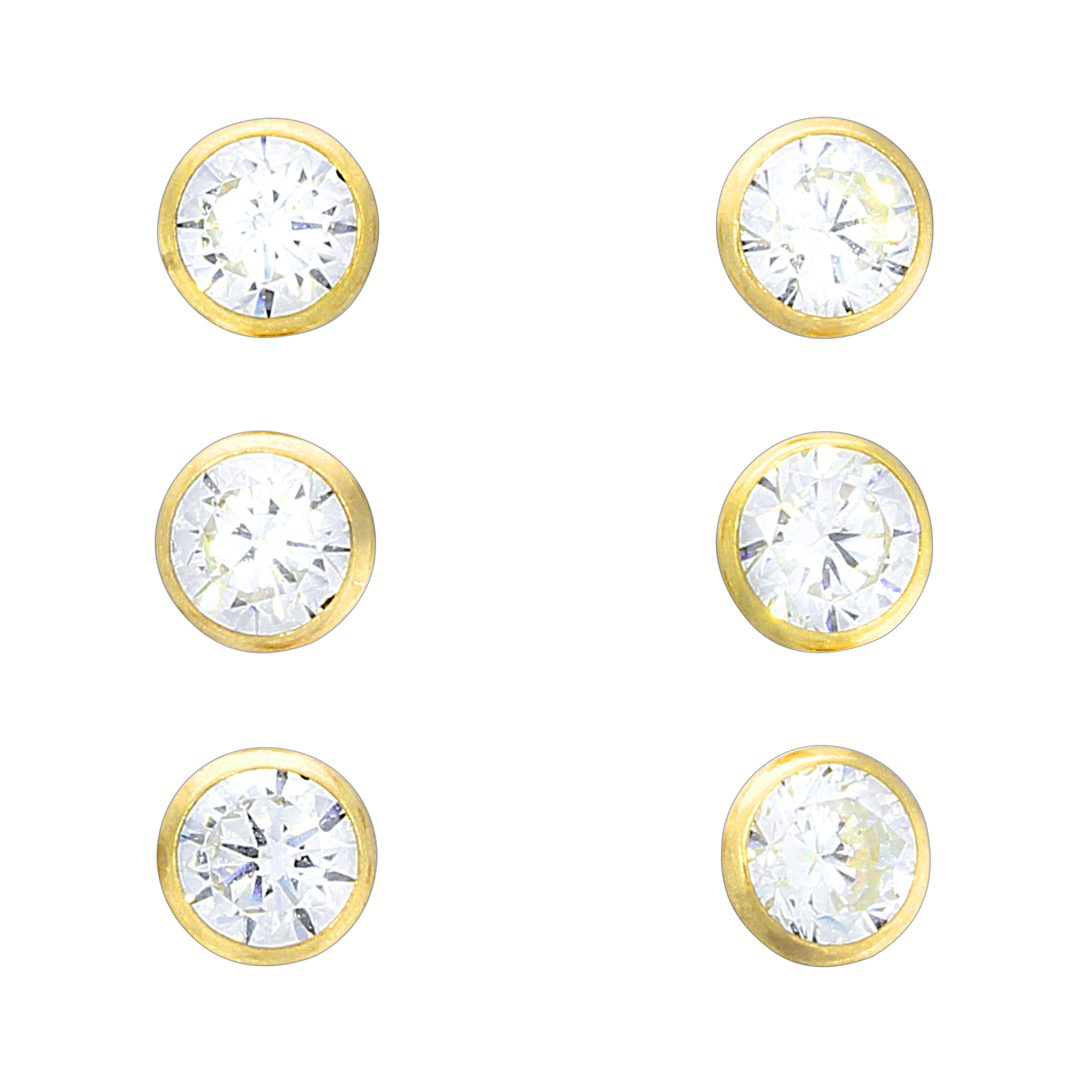 3 Paar Ohrstecker im praktischem Set vergoldet. Ohrringe Kelchform weiße Zirkonia 4mm Durchmesser. Damenschmuck mit Pin und Flügelsicherung. Ideales Geschenk für Frauen. Schmuckstück in schönem Geschenk Etui verpackt. .