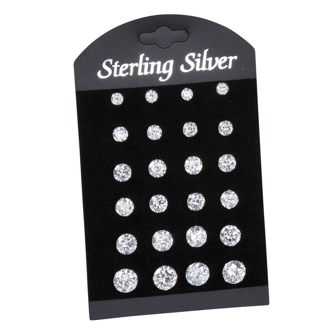 Ohrringe Set Silber 925 rhodiniert (12 Paar). Ohrstecker mit klassischem zeitlosen Design. Veredelt mit funkelnden Zirkonia Steinen 4mm – 8mm. Anlaufgeschützt durch eine Rhodium Beschichtung. Das ideale Geschenk für Frauen. .