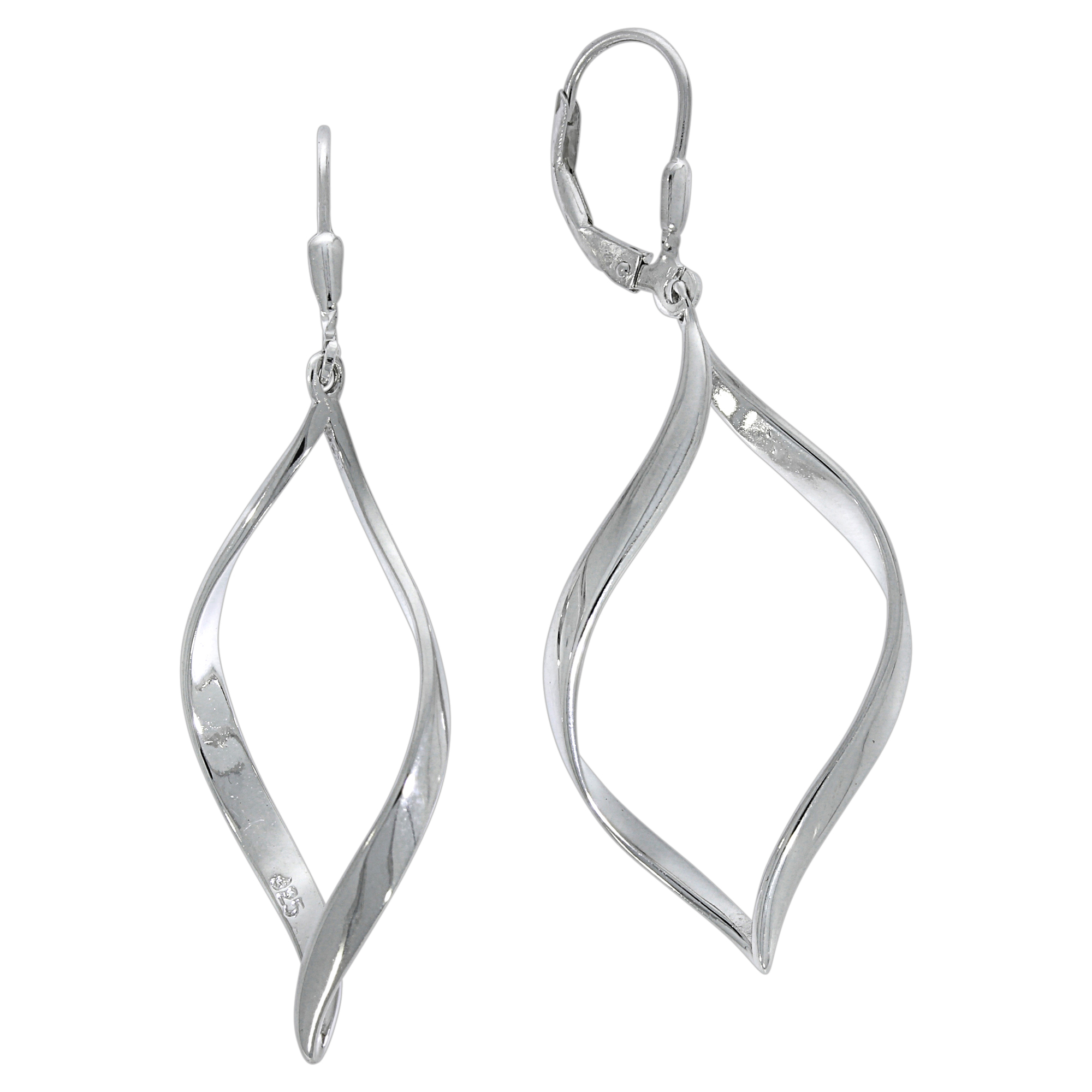 Elegante Ohrhänger 925 Sterling Silber rhodiniert. Ohrringe in feiner geschwungener Form poliert. Anlaufgeschützt durch Rhodinierung des Ohrschmucks. Ideales Geschenk für Frauen. Damenschmuck in schönem Geschenk Etui verpackt. .