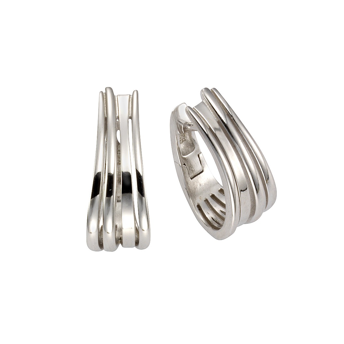 Klappcreolen aus 925-/ Sterling Silber rhodiniert. Glänzende Oberfläche der Creolen mit Anlaufschutz. Diese Ohrringe sind ein Must-Have für jede Frau. Angenehmer Tragekomfort durch Klappverschluss. Ideales Geschenk für Frauen. .