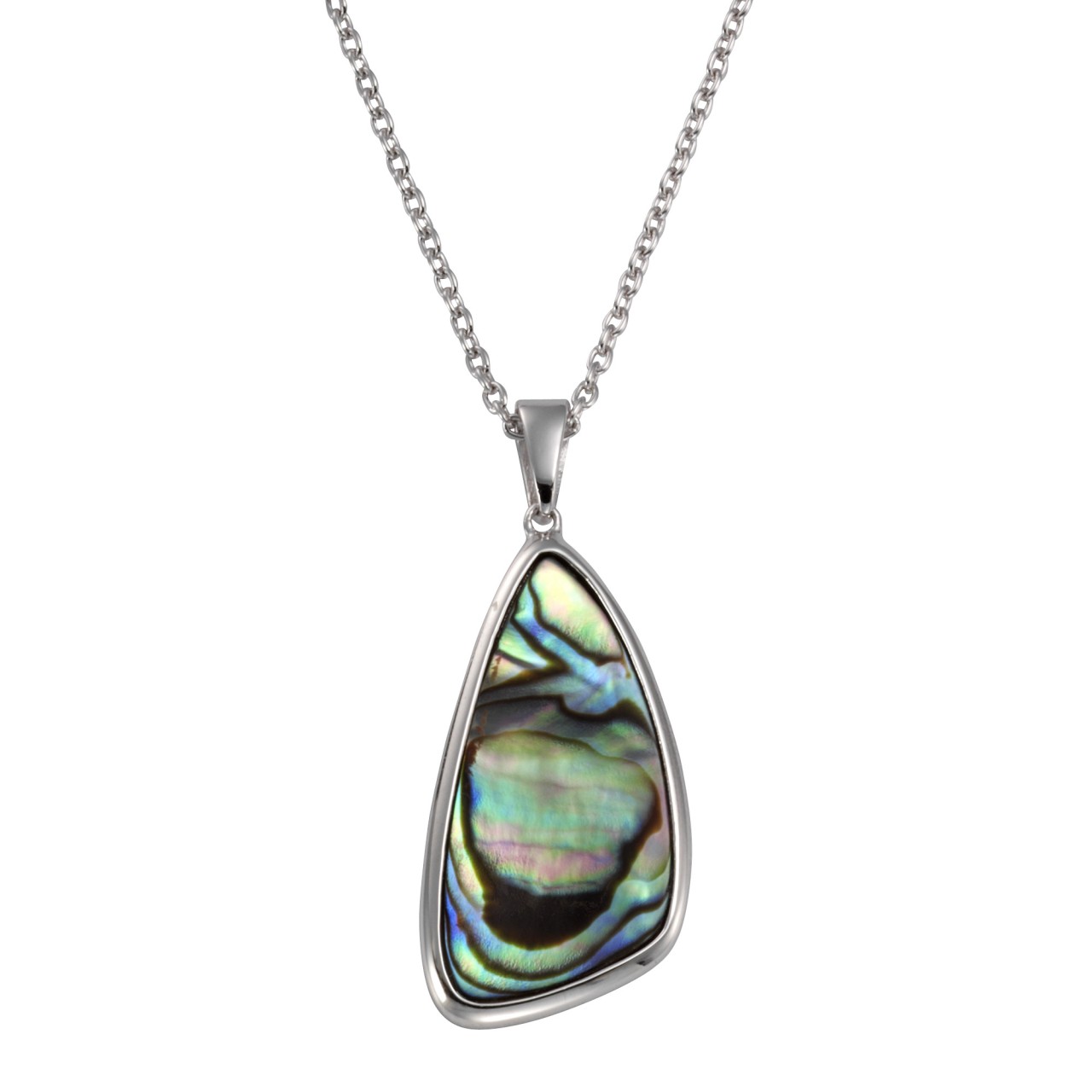 Halskette aus 925 Sterling Silber rhodiniert. Großer Anhänger mit Abalone. Toller Eye-Catcher, hochwertig verarbeitet. Schmuckstück in schönem Geschenk Etui verpackt. Ein ideales Geschenk für Frauen. .
