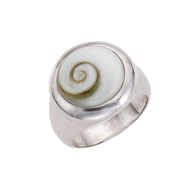 Ring aus 925 Sterling Silber rhodiniert. Silberring mit weißer Muschel. Toller Eye-Catcher für jede Hand. Schmuckstück in schönem Geschenk Etui verpackt. Ein ideales Geschenk für Frauen. .