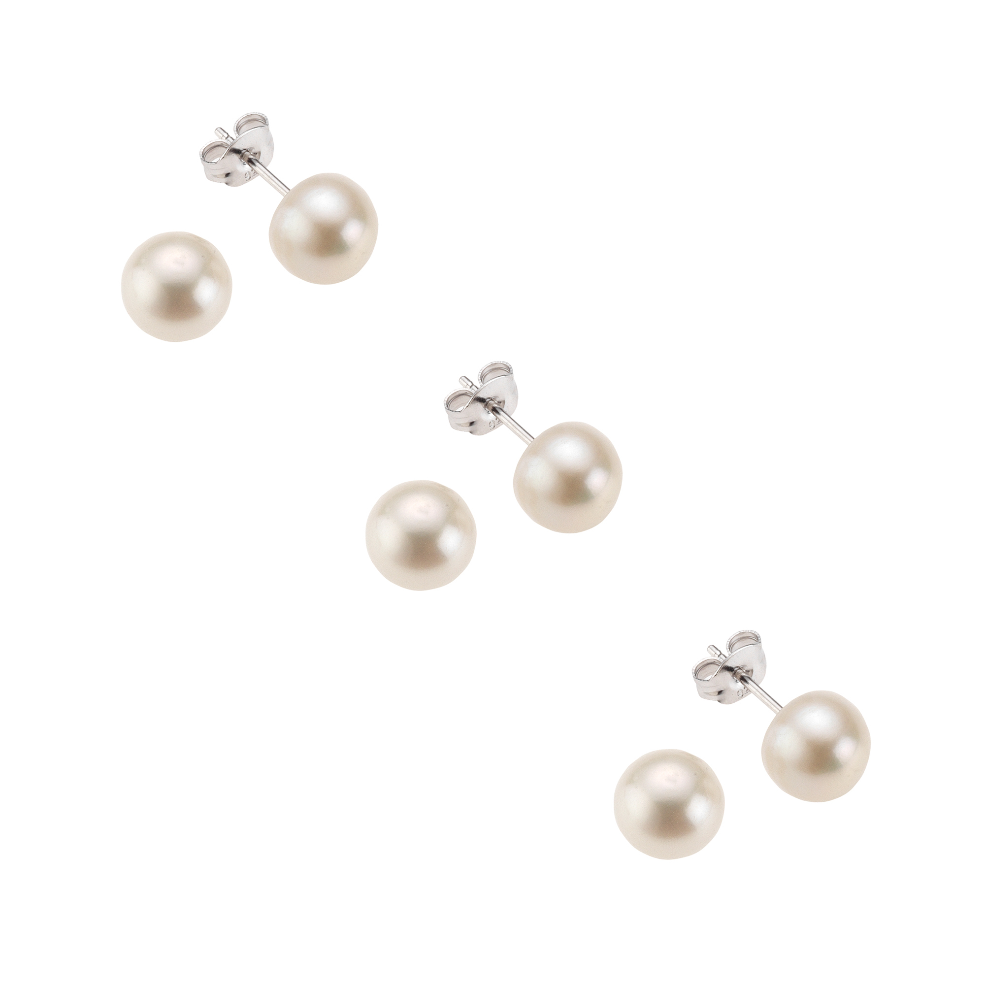 Ohrring Set mit Süßwasserzuchtperlen. Ohrstecker aus 925 Sterling Silber rhodiniert. Perlohrringe tragbar in verschiedenen Ohrlöchern. Silberohrringe in zeitlosem Design für jeden Look. Das perfekte Geschenk für Frauen. .