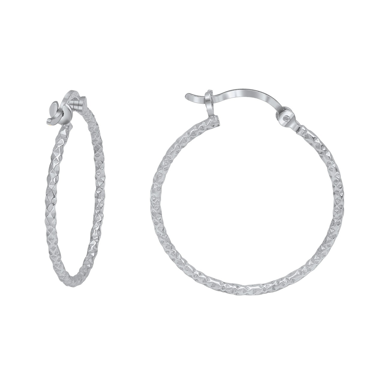 Moderne Ohrringe durch diamantierte Oberfläche. Creolen vielseitig kombinierbar zu jedem Anlass. Schmuckstück Must-Have in jeder Schmucksammlung. Schmuck gefertigt aus feinem 925 Sterling Silber. Ideales Geschenk für Frauen. .