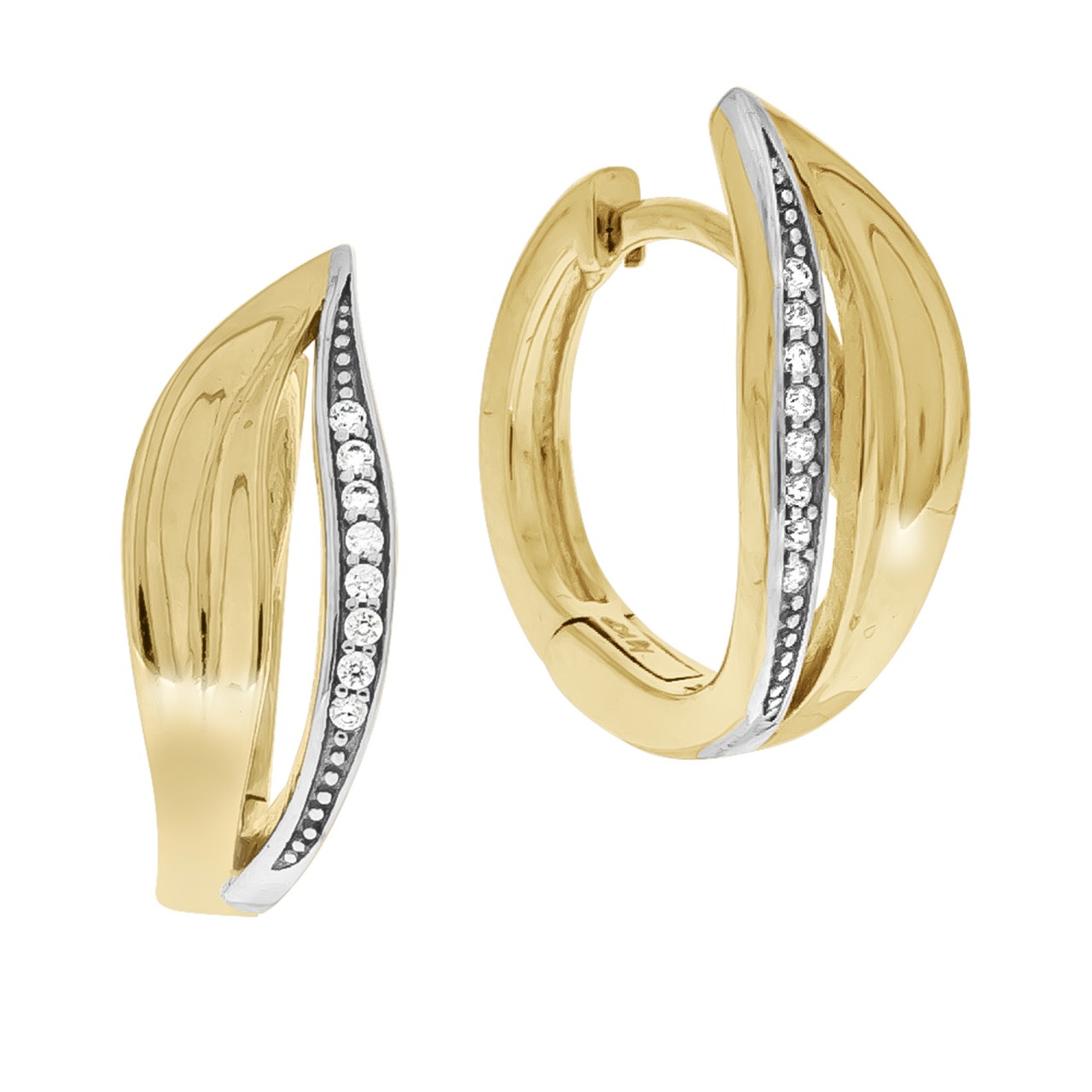 Klappcreolen aus 925 Sterling Silber vergoldet. Ohrringe mit funkelnden Zirkonia Steinen besetzt. Angenehmer Tragekomfort durch Klappverschluss. Ein ideales Geschenk für Frauen. Schmuckstück in schönem Geschenk Etui verpackt. .