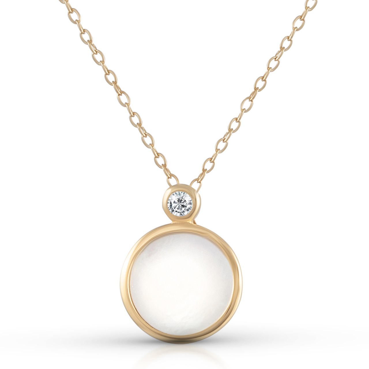 Halskette aus 925 Sterling Silber vergoldet. Anhänger mit Perlmutt und Zirkonia. Silberkette passend zu jedem Outfit. Schmuckstück in schönem Geschenk Etui verpackt. Ein ideales Geschenk für Frauen. .