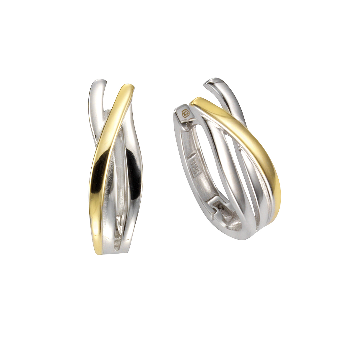 Klappcreolen aus 925-/ Sterling Silber rhodiniert+vergoldet. Formschöne Ohrringe in geschwungener Optik. Angenehmer Tragekomfort und anlaufgeschützt. Klappverschluss sorgt für einen sicheren Halt. Ideales Geschenk für Frauen. .