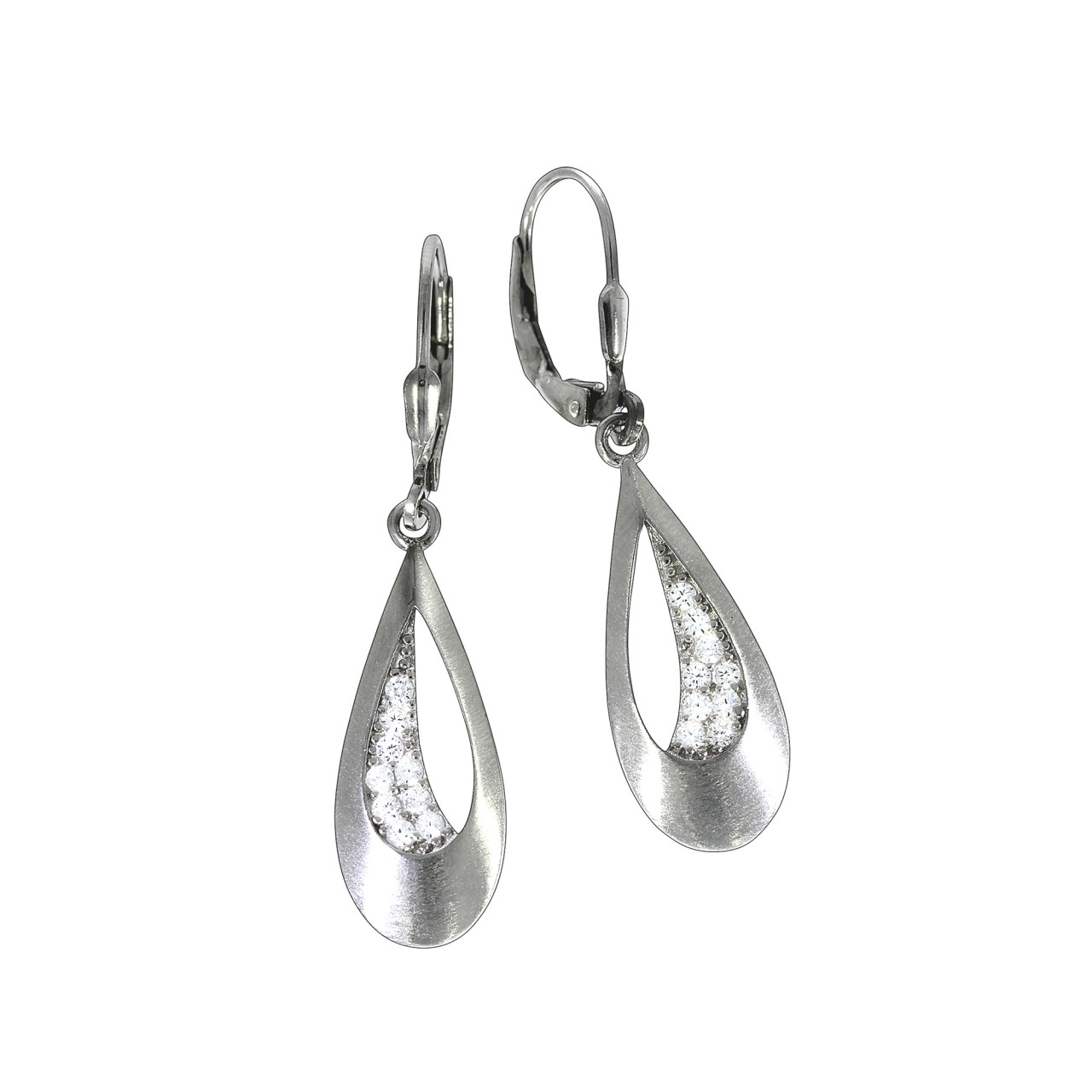 Elegante Ohrhänger 925 Sterling Silber rhodiniert. Ohrringe veredelt mit je 9 weißen Zirkonia-Steinen. Angenehmer Tragekomfort durch Klappverschluss. Ideales Geschenk für Frauen. Damenschmuck in schönem Geschenk Etui verpackt. .
