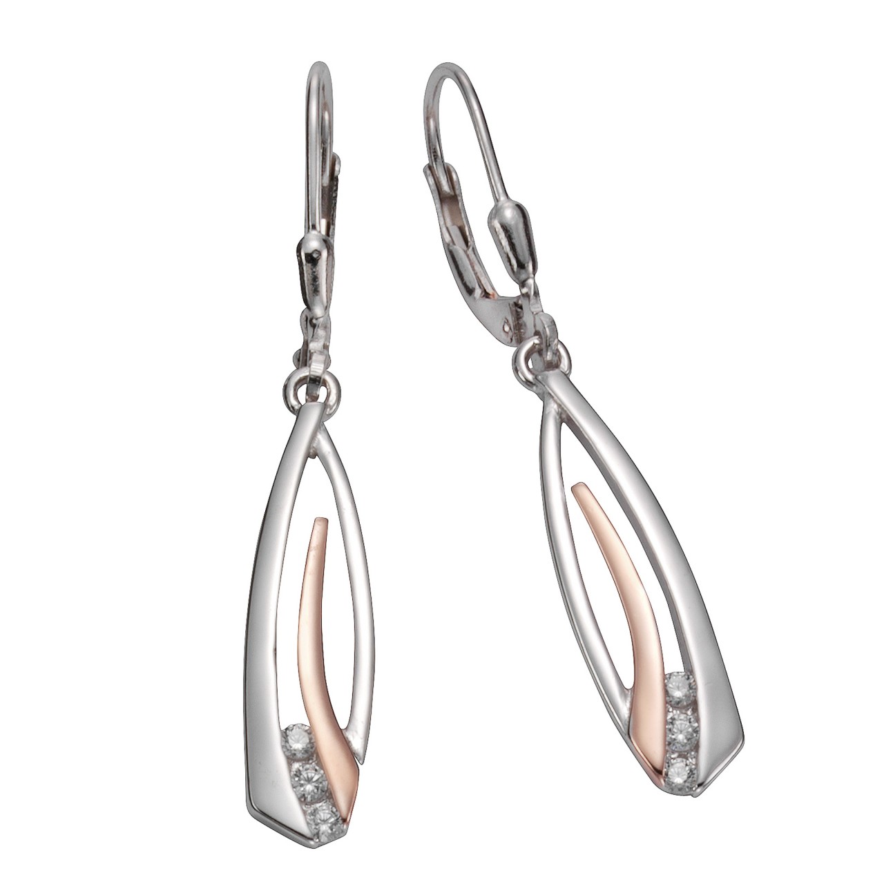 Elegante Ohrringe hängend aus 925 Sterling Silber. Oberfläche der Ohrringe sind teilvergoldet. Veredelt mit je 3 weißen Zirkonia-Steinen. Ein ideales Geschenk für Frauen. Stilvolle Ohrringe für jedes Schmuckrepertoire. .