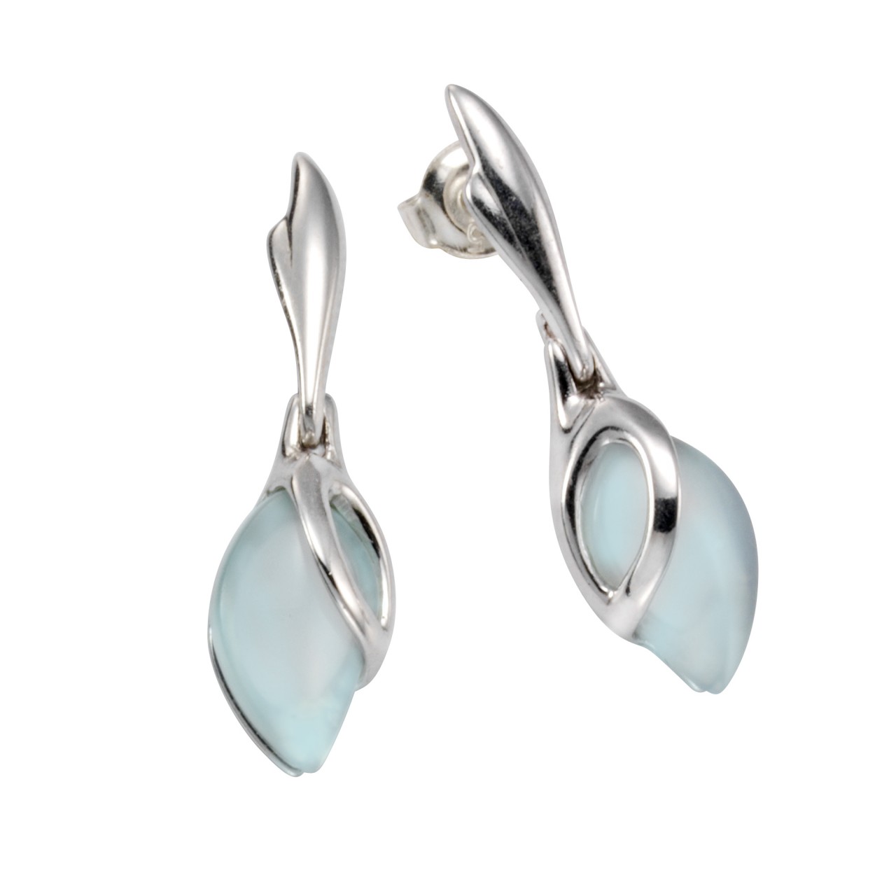 Edle Ohrstecker aus 925/- Sterling Silber rhodiniert. Mit je einem Aqua-Achat in blau. Hochglanzpolierte Oberfläche. Angenehmer Tragekomfort. Hochwertige Verarbeitung. .