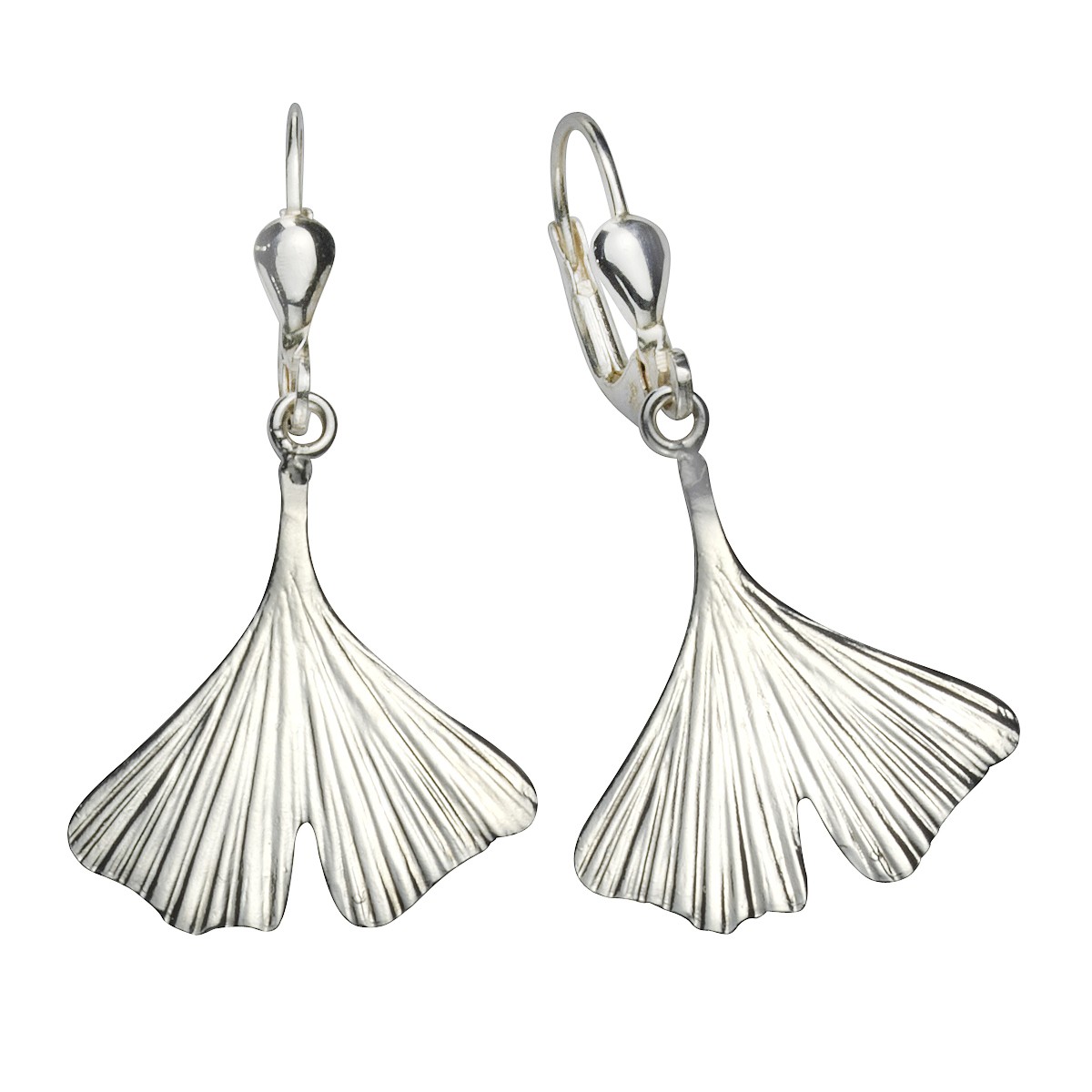 Elegante Ohrhänger aus 925/- Sterling Silber. In Form von Ginkgo-Blätter. Angenehmer Tragekomfort. Hochglanzpoliert und anlaufgeschützt. Für den Alltag oder besondere Anlässe. .