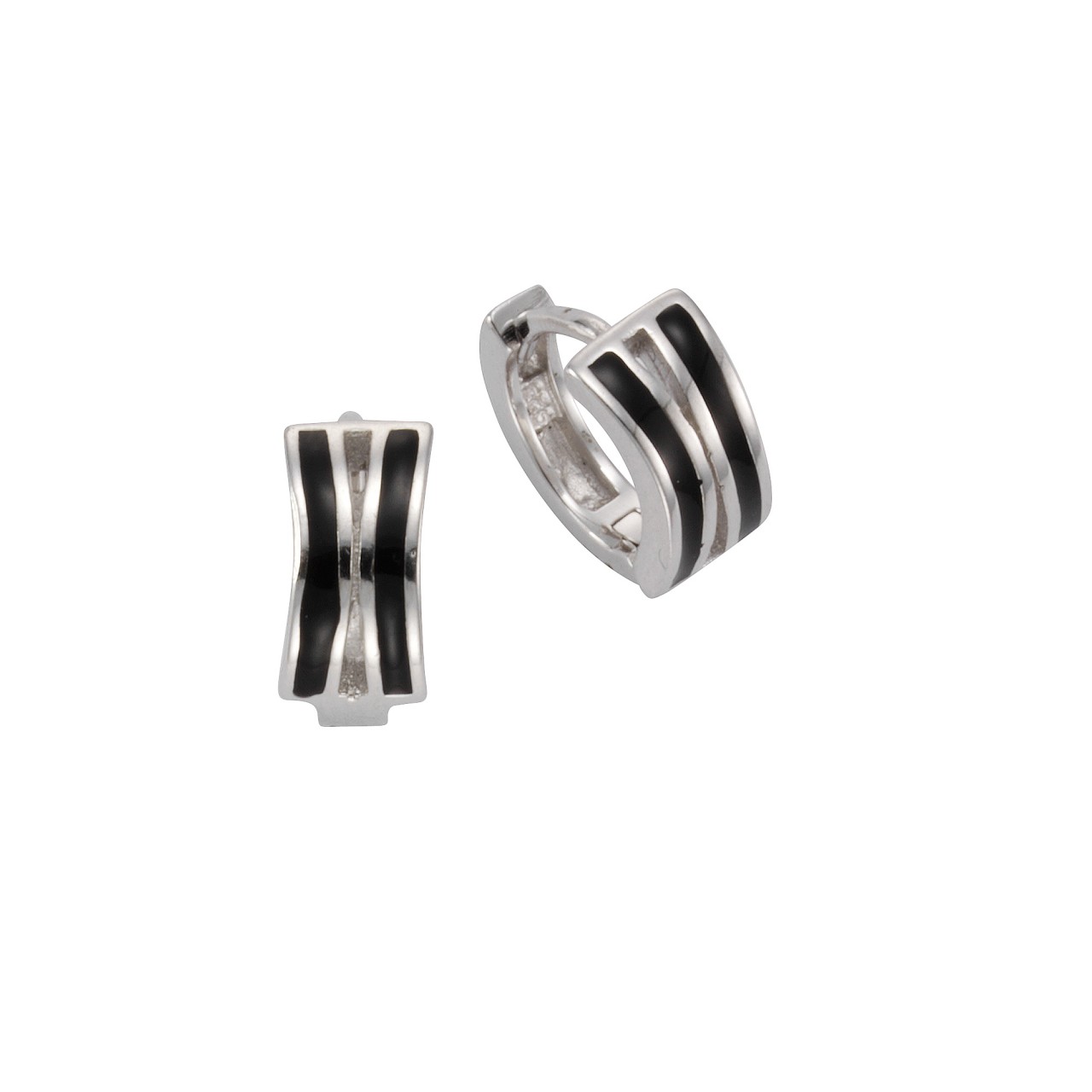 Elegante Klappcreolen aus 925-/ Sterling Silber rhodiniert. Mit schwarzer Lackbeschichtung. Klappverschluss sorgt für einen sicheren Halt. Faszinierendes Design für jeden Anlass. Ideales Geschenk für Frau oder Freundin. .