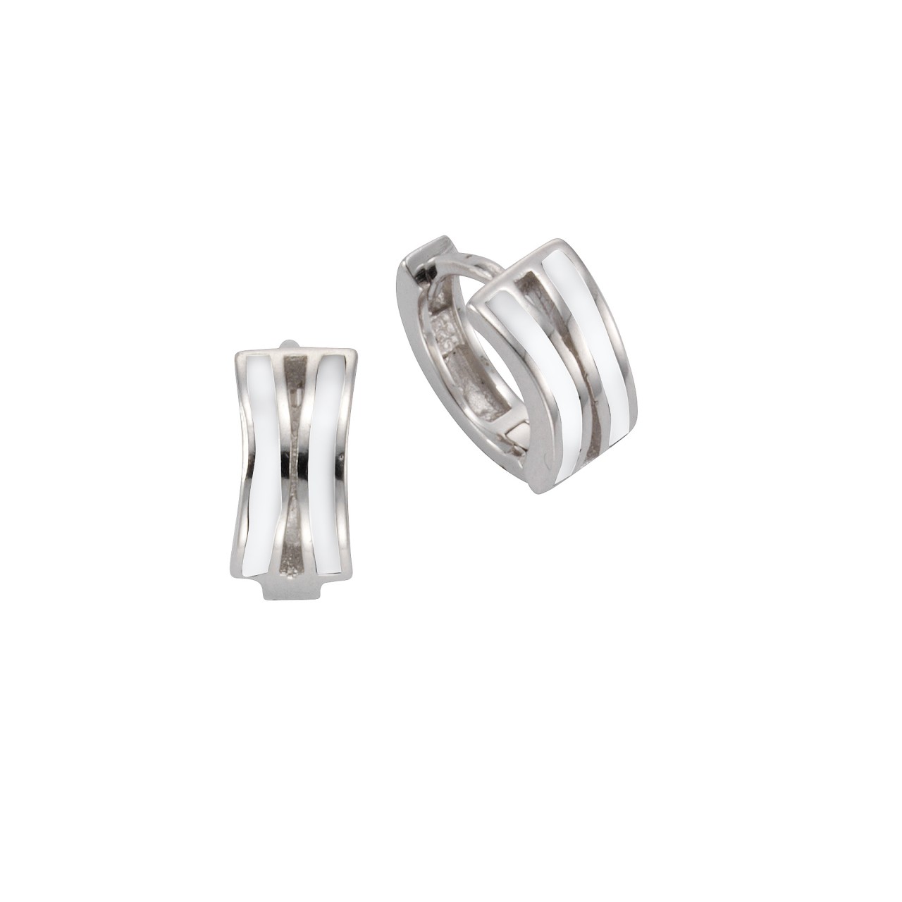 Elegante Klappcreolen aus 925-/ Sterling Silber rhodiniert. Mit weißer Lackbeschichtung. Klappverschluss sorgt für einen sicheren Halt. Faszinierendes Design für jeden Anlass. Ideales Geschenk für Frau oder Freundin. .