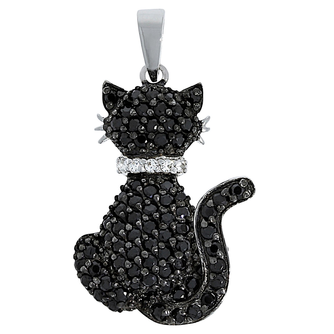 Schöner Anhänger aus 925 Silber rhodiniert. Filigranes Katzen Motiv mit schwarzen Steinen. Silber Anhänger ohne Kette. Gesamtlänge 3,0cm. Das ideale Geschenk für Katzenliebhaber. .