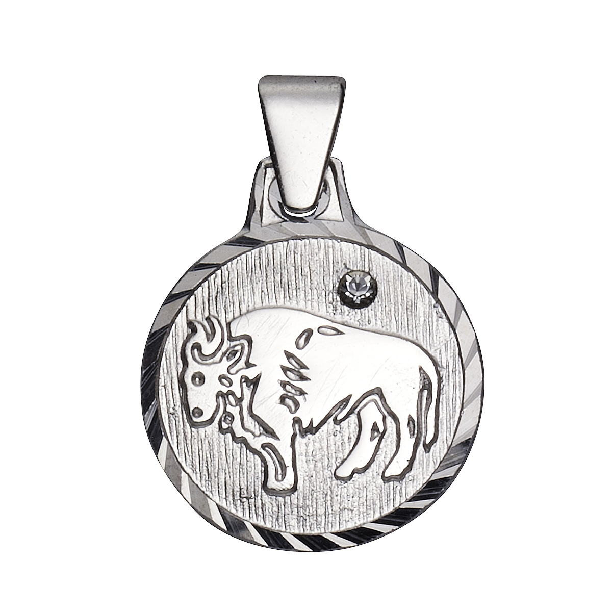 Klassischer Anhänger aus 925/- Silber rhod.. Sternzeichen-Symbol “Stier”. Hochglanzpoliert und anlaufgeschützt. Veredelt mit einem weißen Kristall. Schönes Accessoire – auch für den Alltag!. .