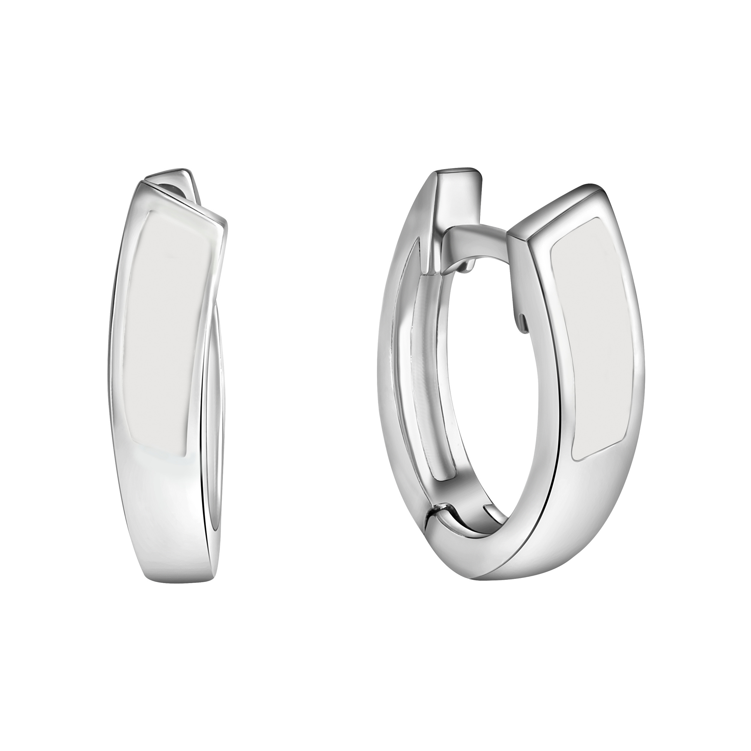 Elegante Klappcreolen aus 925-/ Sterling Silber rhodiniert. Mit weißer Lackbeschichtung. Hochwertige Verarbeitung. Faszinierendes Design für jeden Anlass. Das ideale Geschenk für besondere Anlässe. .