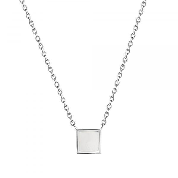 Kette mit Anhänger aus 925/- Sterling Silber rhodiniert. Ankerkette mit Karabiner. Eckiger Anhänger mit weißer Lackeinlage. Hochwertige Verarbeitung. Für den Alltag oder besondere Anlässe. .