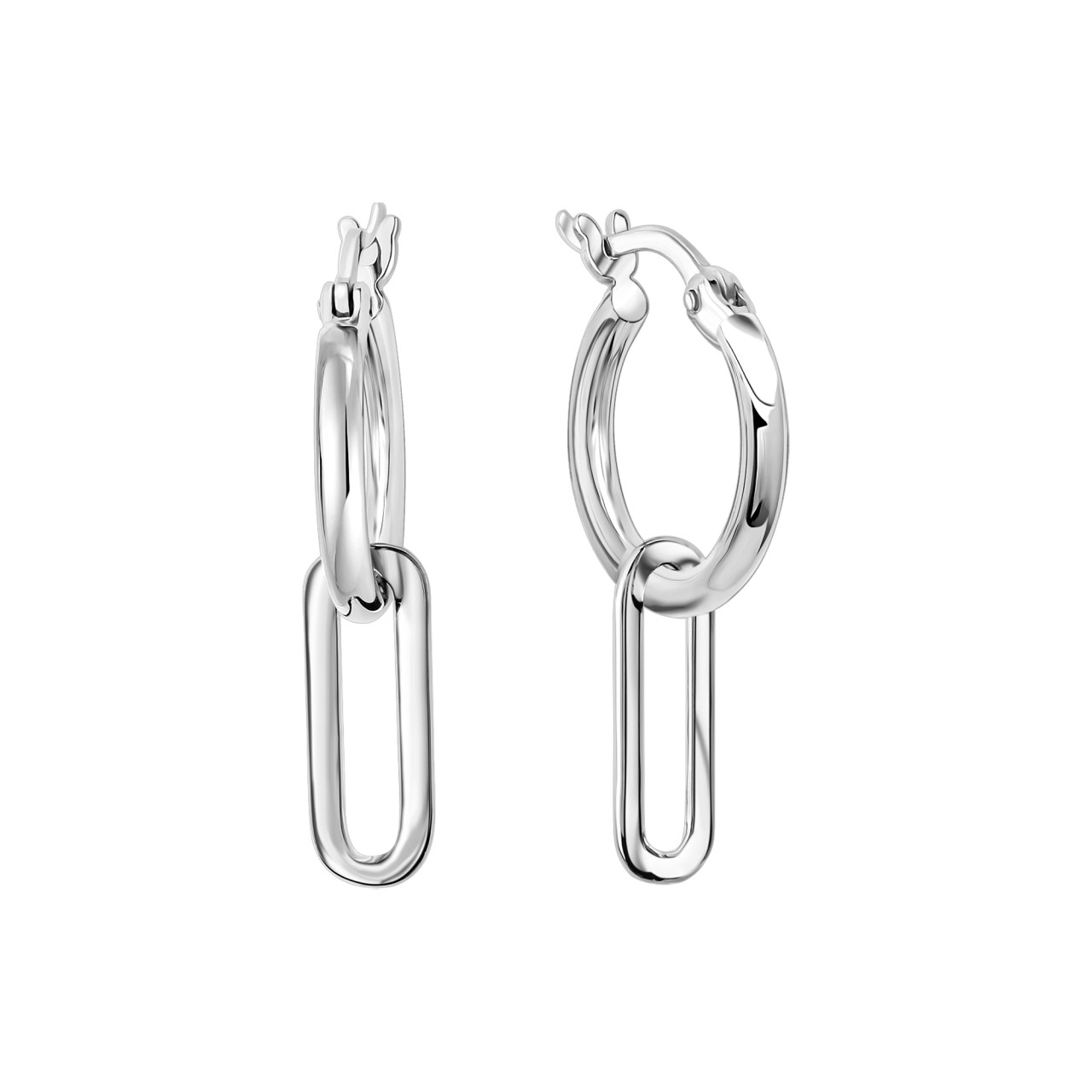 Ausgefallene Creolen aus 925/- Silber rhodiniert. Je 1 Glied als Einhänger. Oberfläche glänzend. Hochwertige Verarbeitung. Für den Alltag oder besondere Anlässe. .