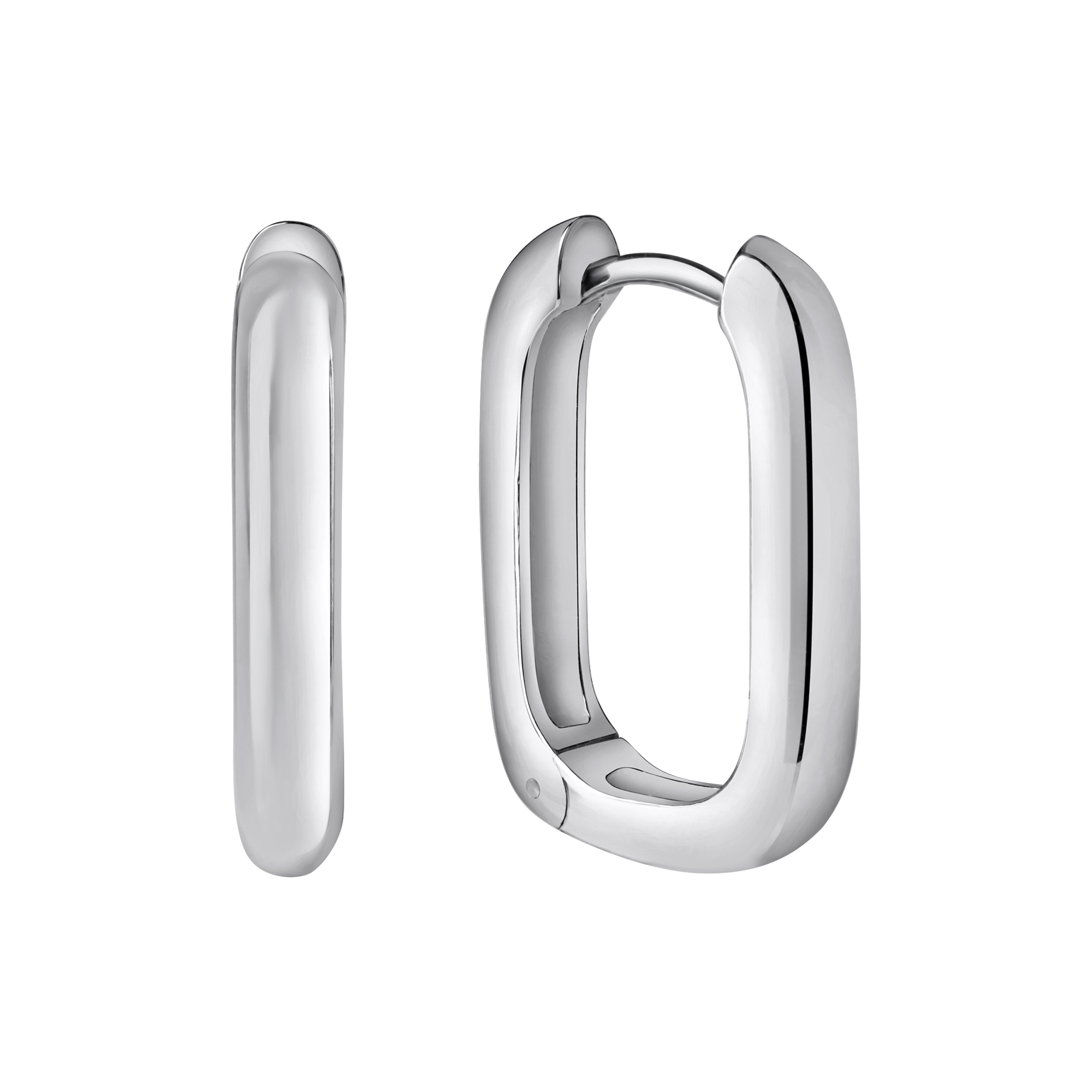 Edle Creolen aus 925/- Sterling Silber rhodiniert. Rechteckiges Design. Oberfläche glänzend. Sehr angenehmer Tragekomfort. Für den Alltag oder besondere Anlässe. .