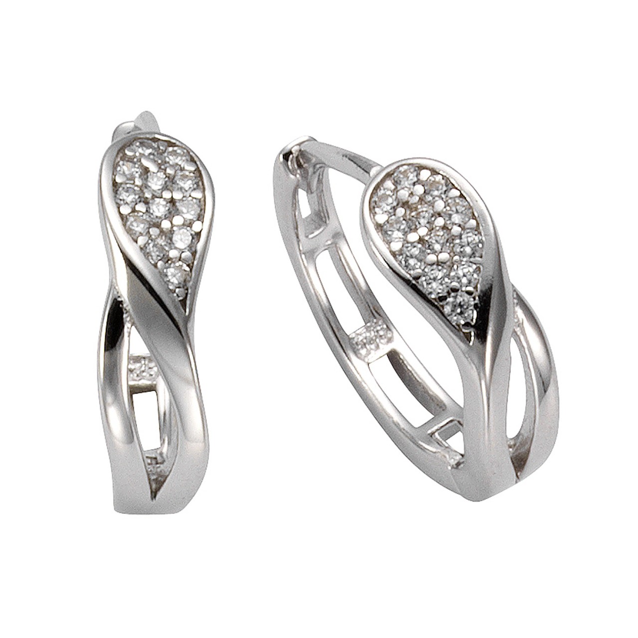 Hochglanzpolierte Oberfläche. Weißer Zirkonia. Anlaufgeschützt durch Rhodium Veredelung. Klappverschluß. . .