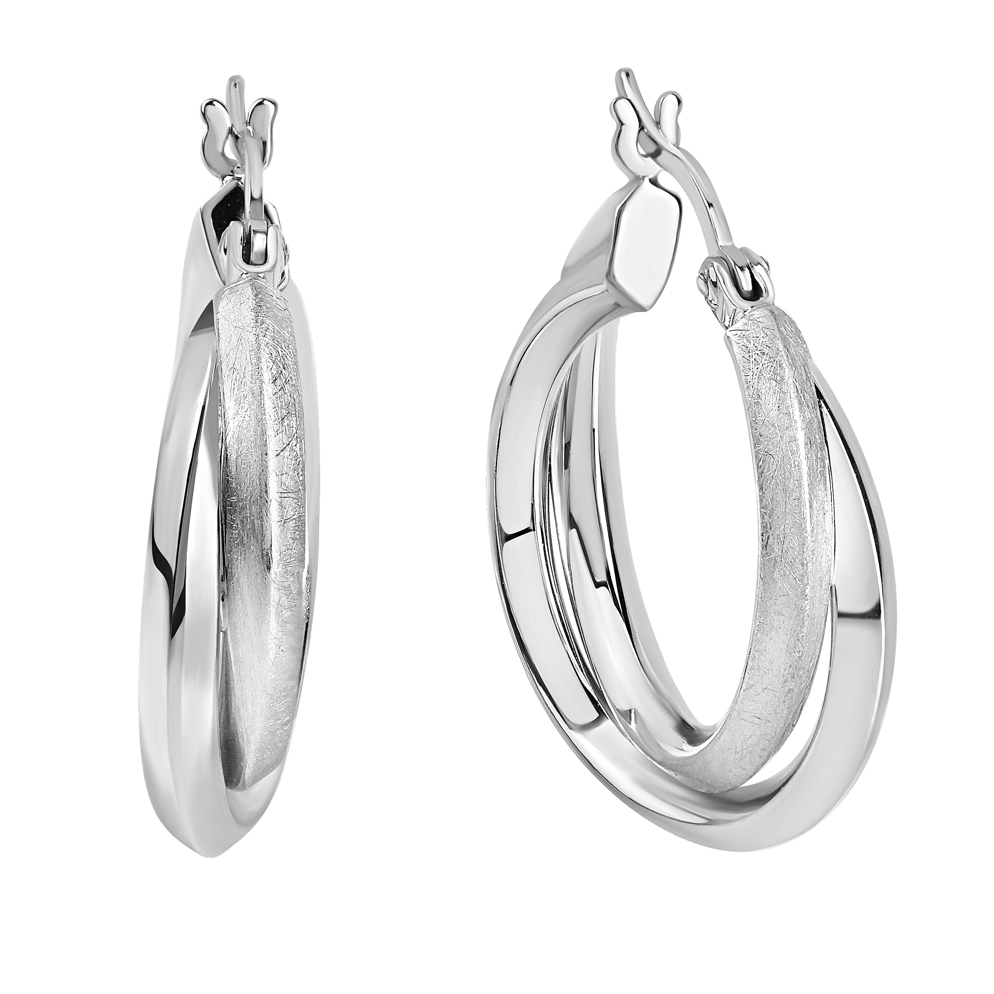 Moderne Creolen aus 925/- Sterling Silber rhodiniert. Oberfläche glanz/matt. Durchmesser 21mm. Hochwertige Verarbeitung. Eine hervorragende Geschenkidee zu den verschiedensten Anlässen. .
