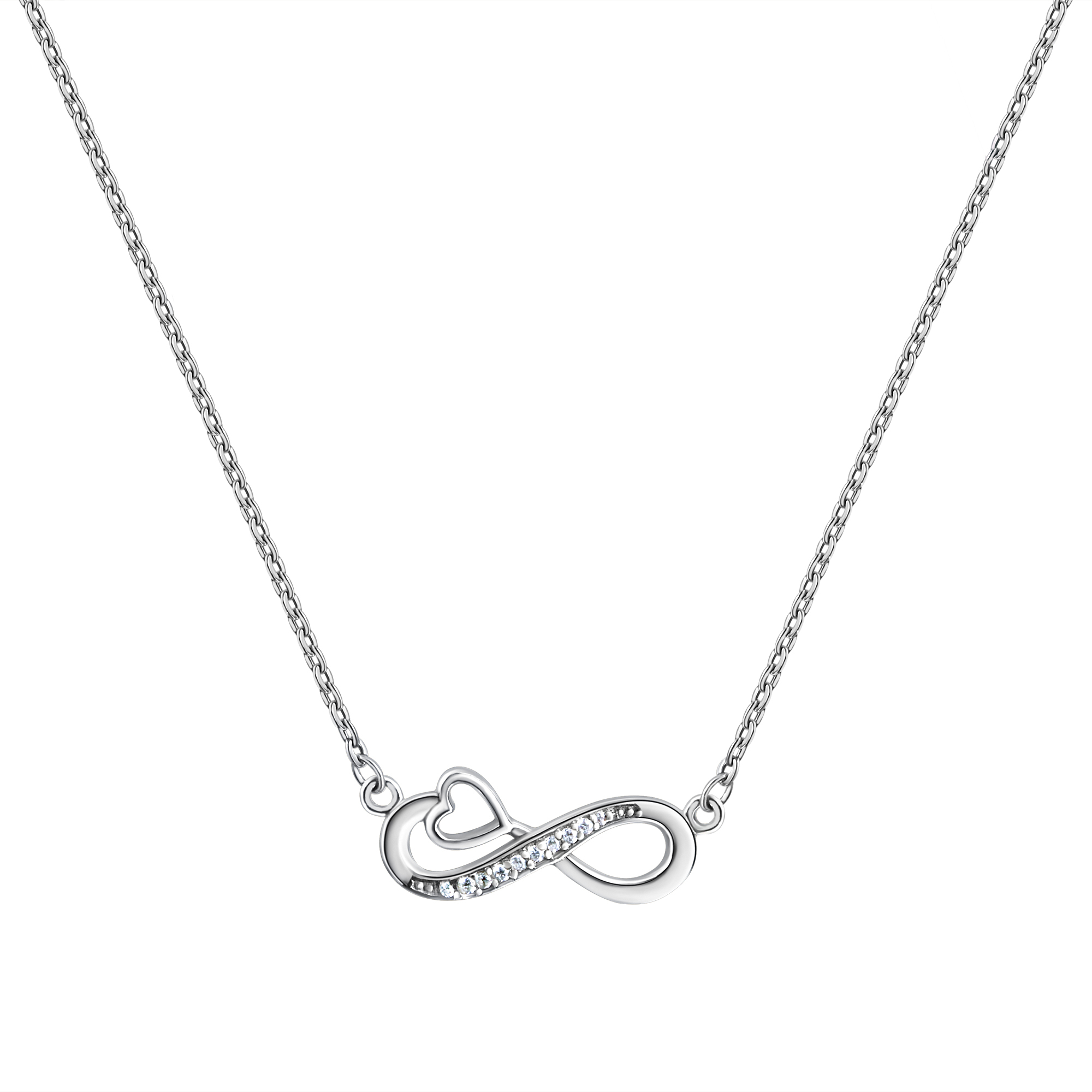 Bezauberndes Collier aus 925/- Sterling Silber rhodiniert. Motiv Infinity mit Herz. Veredelt mit 10 Zirkonia weiß. Ankerkette 42+3cm lang. Das perfekte Geschenk zu jedem Anlass. .