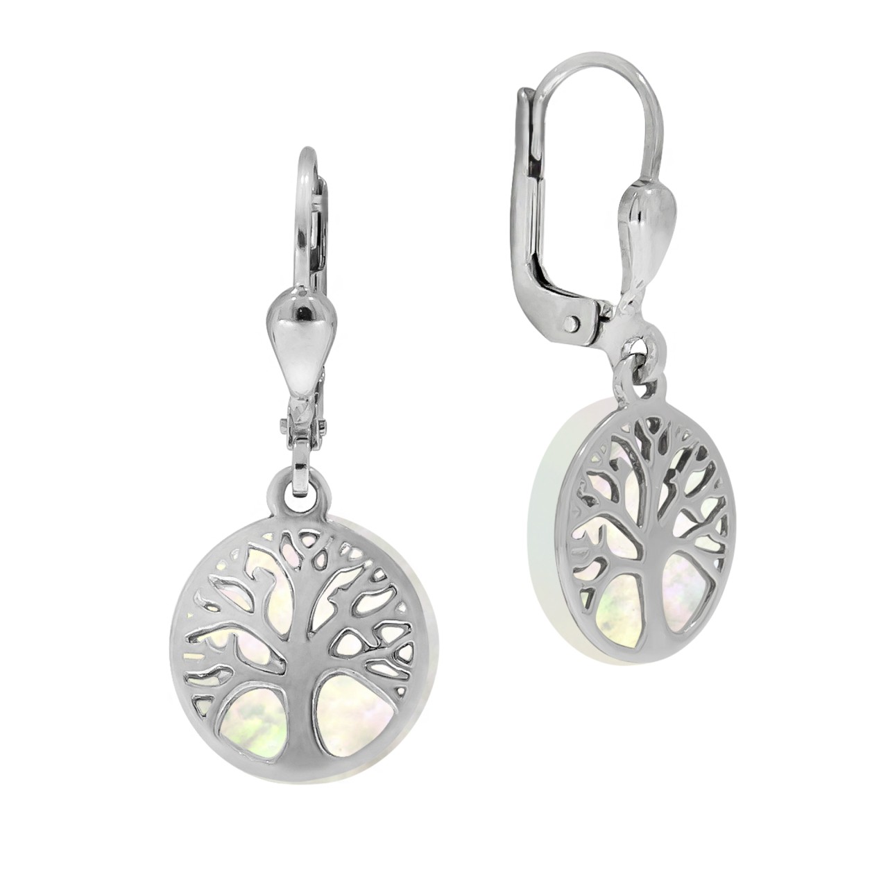 Bezaubernde Ohrhänger aus 925/- Silber rhodiniert. Motiv Lebensbaum. Veredelt mit Perlmutt. Schönes Design. Für den Alltag oder besondere Anlässe. .