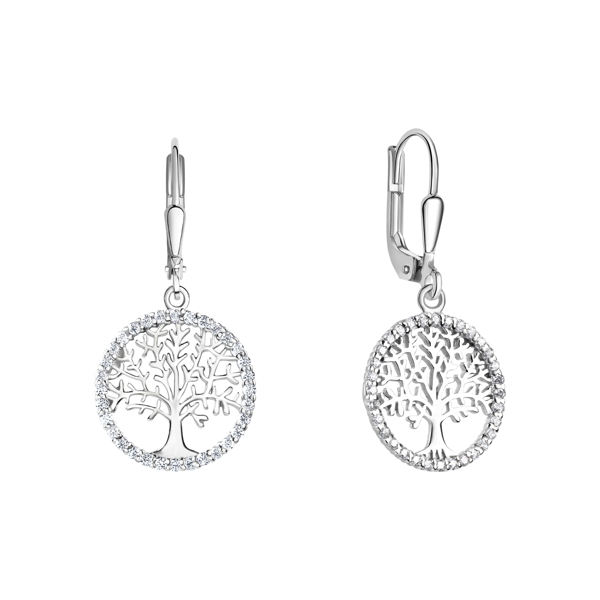 Bezaubernde Ohrhänger aus 925/- Sterling Silber rhodiniert. Motiv Lebensbaum. Veredelt mit insgesamt 60 Zirkonia weiß. Oberfläche glanz. Diese Ohrringe sind das richtige Accessoire für viele Anlässe. .