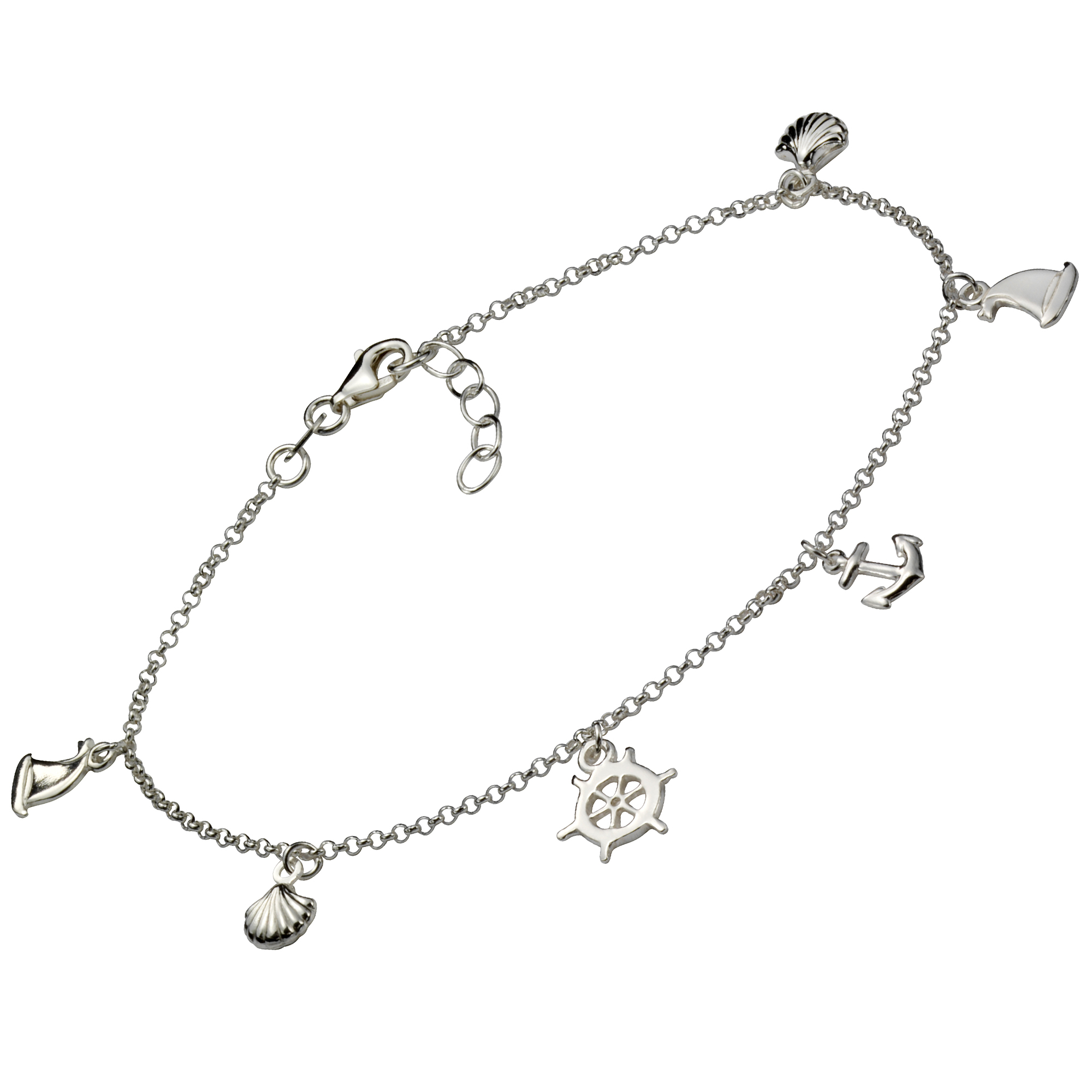 Maritime Fußkette mit 23+2cm Länge. Aus echtem rhodinierten 925 Sterling Silber. Hochwertig gefertigt aus edlen Materialien. Flexibele Länge durch eine praktische Verlängerung. Das ideale Geschenk für Frauen. .