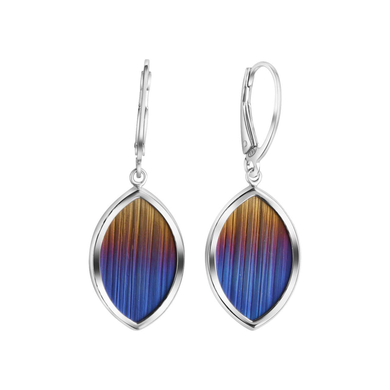 Elegante Ohrhänger aus 925/- Sterling Silber rhodiniert. Mit Titan in blau/braun. Hochwertige Verarbeitung. Schönes Design. Das perfekte Geschenk zu jedem Anlass. .