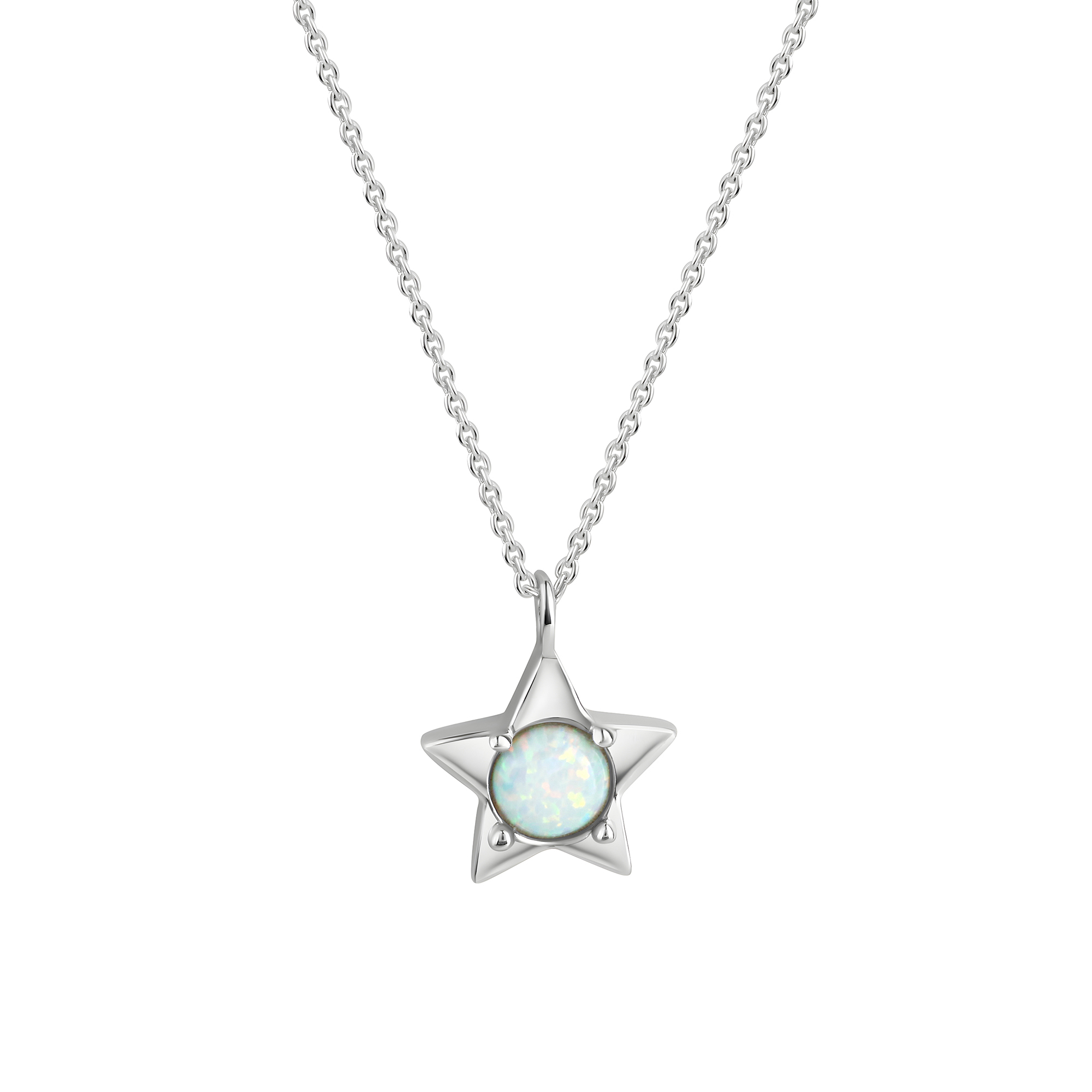 Schönes Collier aus 925/- Sterling Silber rhodiniert. Anhänger Stern. Veredelt mit 1 synth. Opal. Ankerkette 42-45cm lang. Das ideale Geschenk für die Frau oder Freundin. .